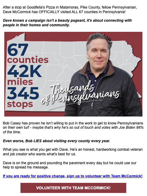 That's the message from President Trump, and that's exactly what we need to do this Fall if we want to kick out liberals like Bob Casey.