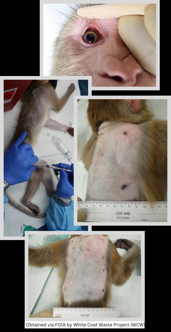 This monkey was infected with a deadly disease in an NIH lab that obtains animals from the NIH’s Alpha Genesis-run Monkey Island. Actual photo obtained by WCW investigators.