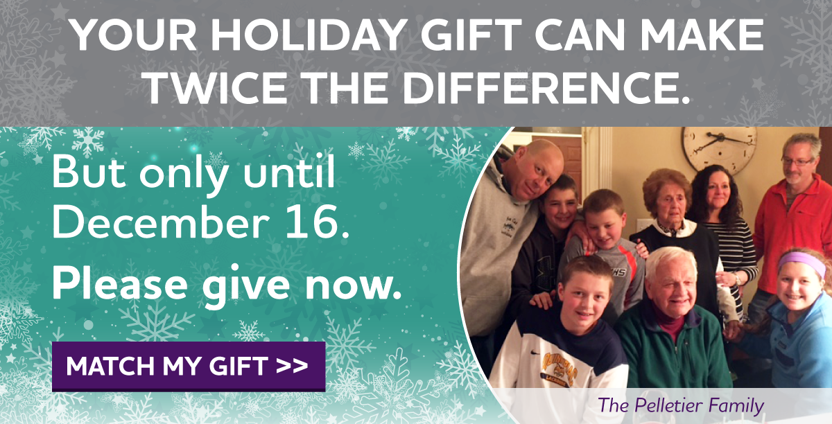 For many people impacted by Alzheimer's, the holidays can bring more pain than joy. That's how you know that Alzheimer's is the ultimate thief. We're committed to creating a world in which Alzheimer's no longer steals holidays, hope and life itself from our loved ones. Your generosity today can go twice as far to help get us there — but we can't waste another minute.