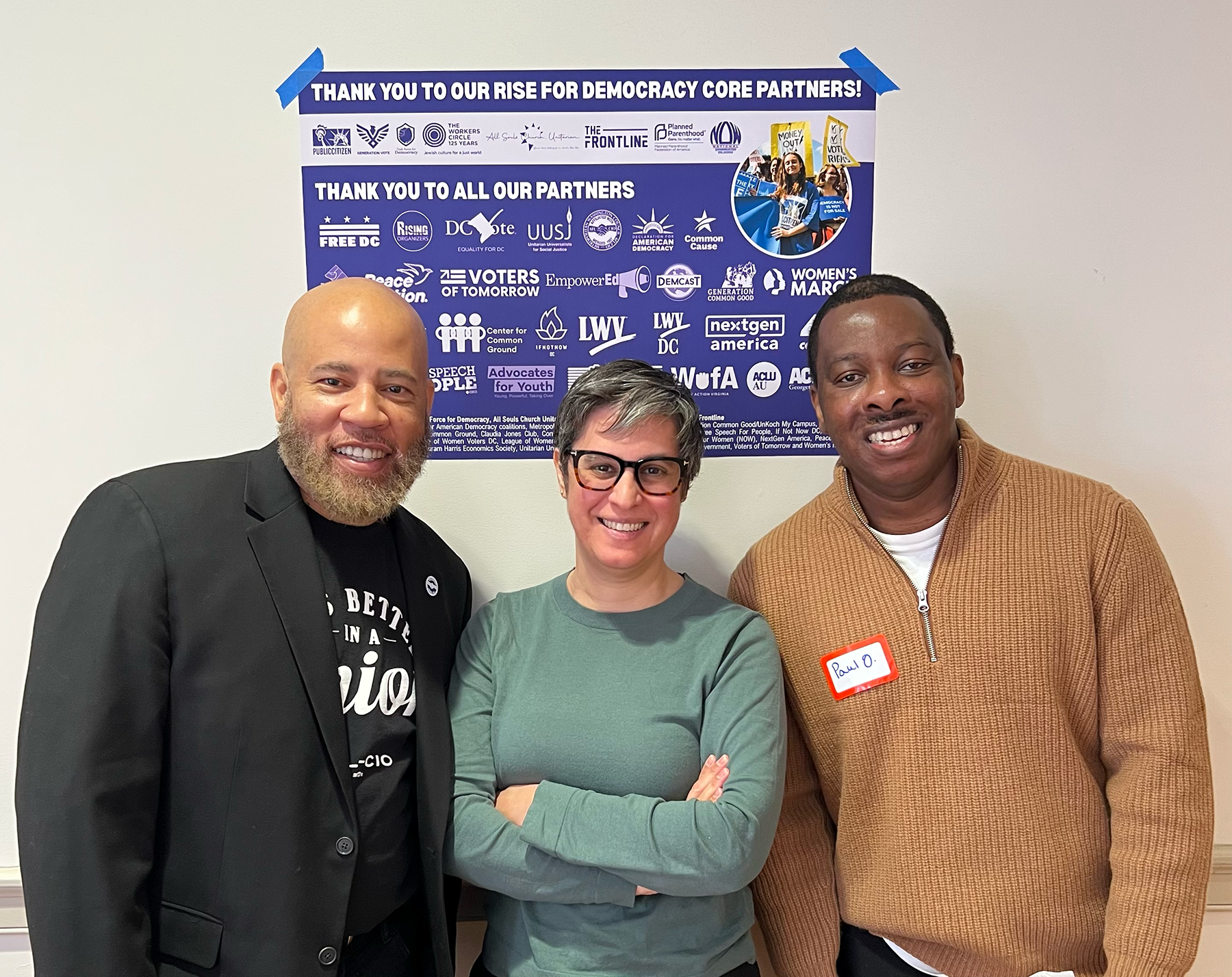 Left: Metropolitan Washington Council President Sam Epps; Alissa Tafti, President of AFGE Local 2211; and Paul joined a panel discussion at Rise for Democracy, a daylong teach-in on Saturday. Right: IBEW Local 26's first RENEW Chess Tournament was a great success. Congrats to Greg Akerman, President of the Baltimore/DC Metro Building and Construction Trades Council, who won the tournament!