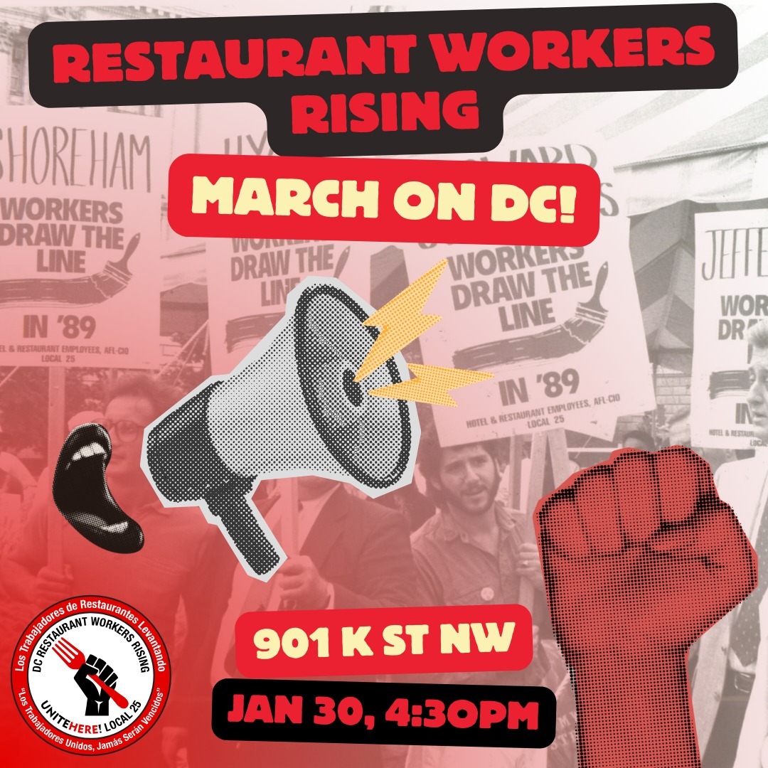 Restaurant workers picket + greet U.S. House Labor Caucus