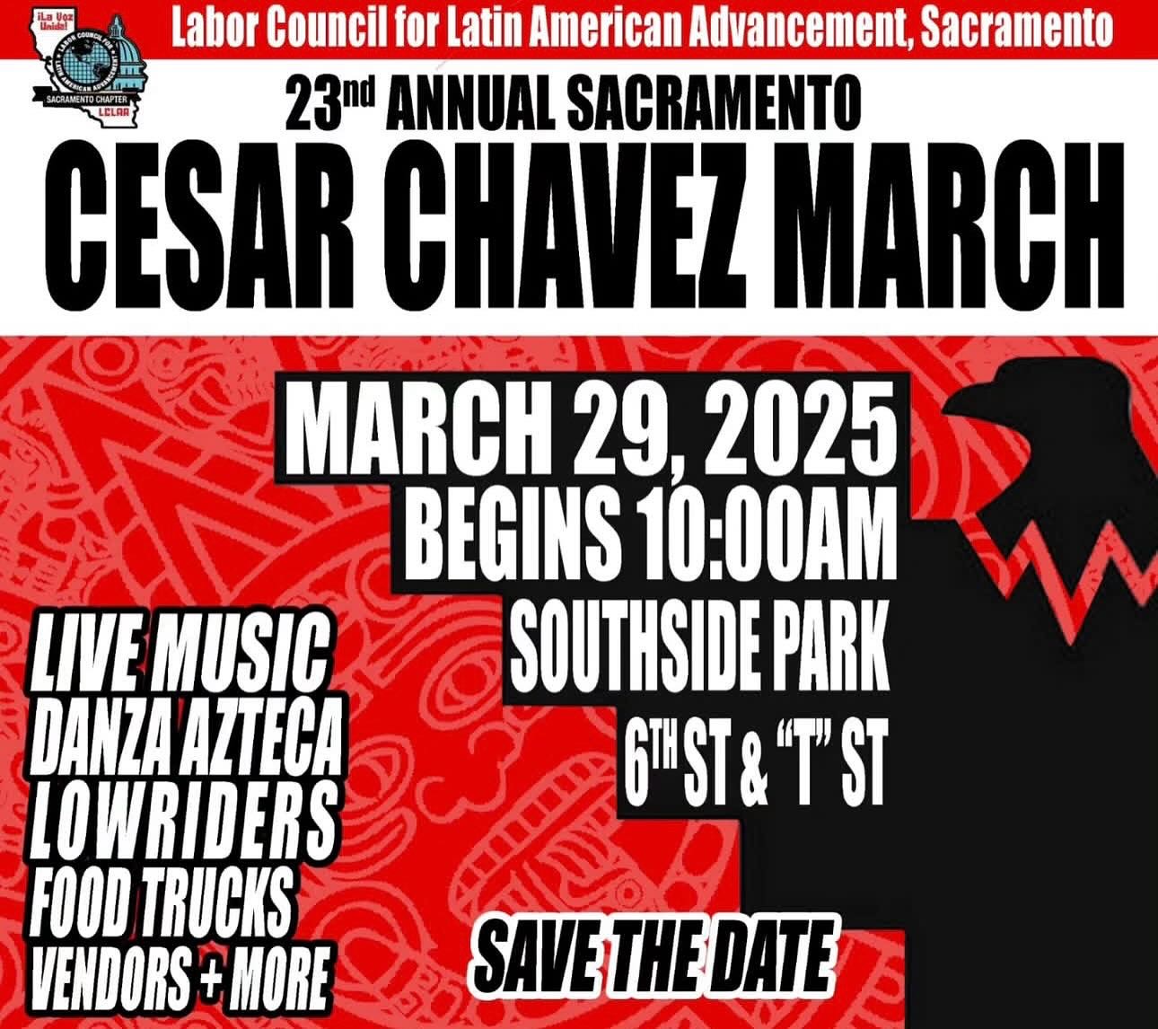 ?Join our annual contingent at the march as we celebrate the legacy of Cesar Chavez and the working class spirit of Sacramento. There will be food, community resources, info booths, and more. We'll see you at Southside Park!