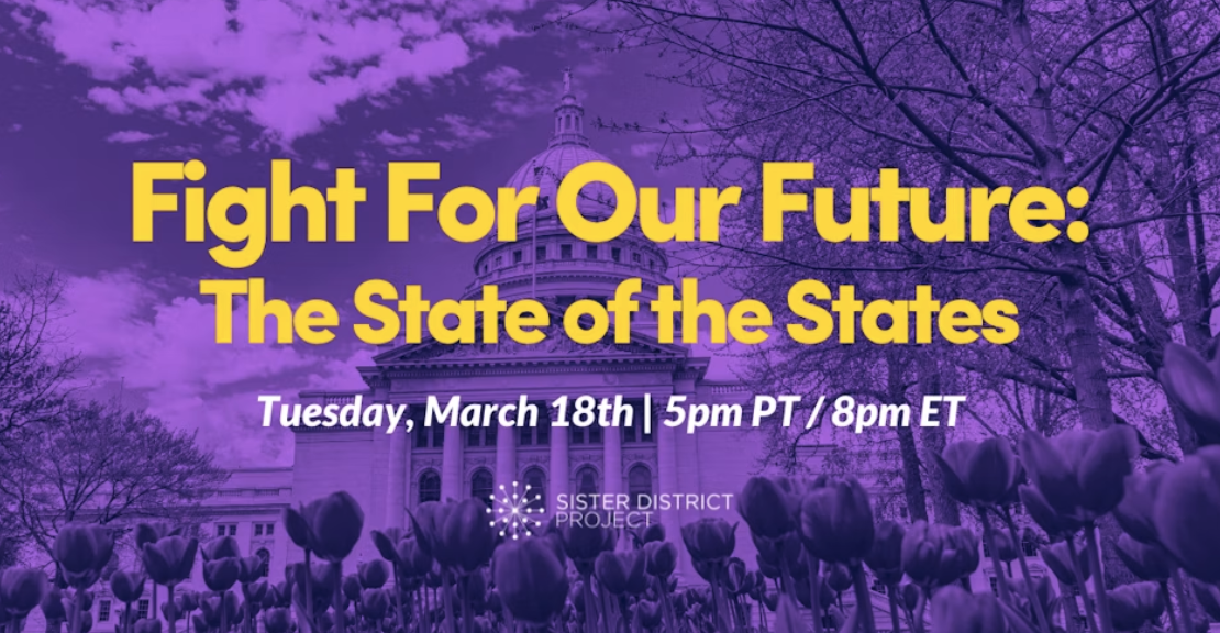 On Tuesday, March 18 at 5pmPT/8pm ET, Sister District is hosting Fight for Our Future: The State of the States — a nationwide mobilization call to break down Trump’s address, unpack the state of our states, and dive into our electoral strategy to build progressive power in state legislatures for 2025 and 2026.
