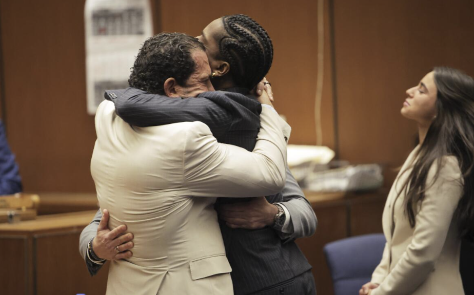 ASAP Rocky has been acquitted of two counts of assault stemming from a 2021 Hollywood shooting, capping a month long trial marked by allegations of courtroom misconduct and frequent appearances by the defendant’s superstar paramour, Rihanna. The verdict was read in front of a packed courtroom, including Rihanna, who Rocky leaped over a courtroom divider to hug as his supporters let out a loud roar when the court clerk read the words “not guilty.” “Thank y’all for saving my life,” Rocky told the jury as they exited. “You’re making the right decision.” Reporters and members of the public were jammed shoulder to shoulder in the 9th-floor courtroom. Los Angeles County Dist. Atty. Nathan Hochman was also present. The rapper, whose legal name is Rakim Mayers, was accused of shooting his former friend and ASAP Mob member Terrell Ephron, a.k.a. ASAP Relli, following a fight near The W Hotel in Hollywood in November 2021. The longtime friends, who helped co-found the ASAP rap collective in Harlem that launched Rocky’s career, drifted apart as Rocky’s star rose. Tensions boiled over after Ephron came under the false impression that Rocky broke a promise to pay for another ASAP member’s funeral, leading to the fight that ended in Rocky shooting Ephron in the hand.