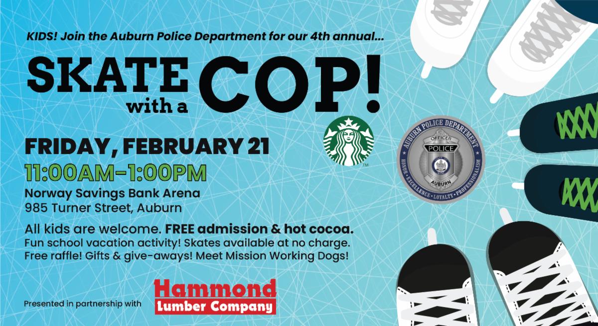 Join the Auburn Police Department this Friday, February 21 for their annual SKATE WITH A COP event!