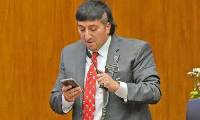I recently wrote about a Ten Commandments bill, which has since been shot down in the North Dakota State Legislature. Then I wrote about Mike “The New Moses” Johnson by way of the Old Testament story of Moses and the golden calf. Readers are probably beginning to wonder if I just sit around all day leafing through Exodus until I’m inspired to write, but that is not the case. Religion is not my area of expertise or my primary subject matter. Unfortunately, Republican politicians keep sticking their pseudo-Christian chocolate into the political peanut butter. The concurrent resolution calling for North Dakota to “acknowledge of the Kingship of Jesus Christ” is still alive. It is sponsored by State Representative Nico Rios, who said that he introduced the resolution because eleven years in North Dakota had caused him to come home to Jesus. (Temperatures outside my house this morning could have caused anyone to find religion in eleven minutes.) Rios added that he will be confirmed in the Roman Catholic Church this Easter. Before I could be married in a Catholic ceremony at the U.S. Naval Academy Chapel a very long time ago, I had to go through a marriage preparation course that included instructions on Natural Family Planning (NFP), so we could avoid the sin of using birth control. The chaplains brought in two couples to talk about their experiences employing NFP, and their stories were remarkably similar: They were going to put off having children, but then they went on their honeymoon, and the timing was bad, so they talked and prayed about it—possibly over fruity island drinks—and decided that maybe it was the right time to start a family. And that’s how they ended up with babies in their arms and toddlers pulling on their clothes as they spoke to half a dozen engaged couples on a Saturday morning in Annapolis, Maryland. I think Nico Rios is intentionally ahead of the game on the NFP part of Catholicism. As long as he keeps his current haircut, he is guaranteed to never face the procreation conundrum. Every Catholic couple intent on waiting a while before they start a family should make the groom an appointment with Rios’s barber before their honeymoon. Then, no amount of fruity island drinks will undercut the blushing bride’s commitment to delaying parenthood. Even taking into account Nico Rios’s abomination of a haircut, even considering his homophobic and anti-immigrant slurs caught on video during a DUI arrest and his antisemitic social media post about overthrowing the “Jew” president of Mexico, Rios and his “Kingship of Jesus Christ” resolution are not the most whacked-out, Church-Lady-ish religious nonsense to emerge from this session. That honor would go to State Rep. Lori VanWinkle’s wombs-of-America rant. VanWinkle, who represents my district in the state legislature, rose to defend her bill granting personhood under the law from the moment of conception, a bill which supporters loudly proclaimed would not outlaw in vitro fertilization (IVF). VanWinkle took an axe to that argument all by herself¹: