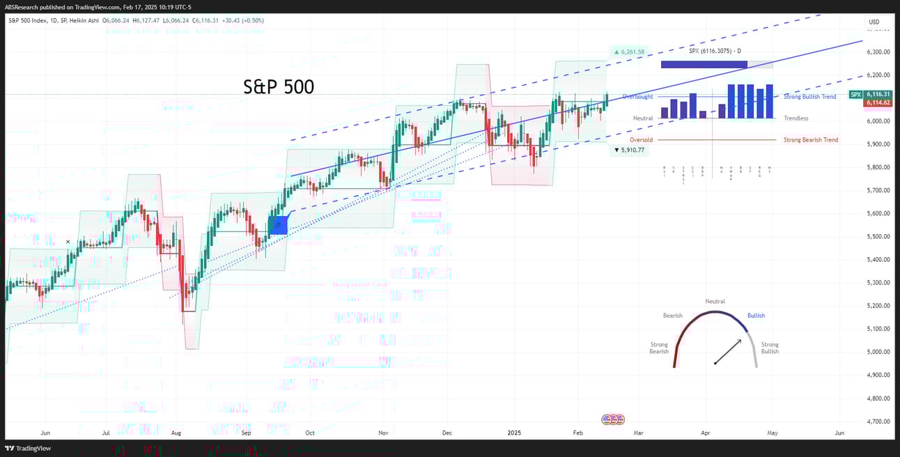 | | Good morning, | Happy Presidents Day! The equity markets displayed resilience, managing to close the week with gains despite a barrage of economic data and geopolitical developments. The S&P 500 climbed 1.5%, while the Dow Jones Industrial Average gained 0.6%. Leading the charge was the Nasdaq Composite, up 2.6%. | The surge in mega-cap stocks significantly influenced overall market performance. The Vanguard Mega Cap Growth ETF (MGK), mirroring this trend, jumped 2.5%, outpacing the broader market. A telling sign of the current market dynamics. This dominance was evident in the S&P 500 sector performance, with Information Technology leading with a 3.8% increase, followed by Communication Services at 2.0%, both sectors heavily populated with mega-cap constituents. | Interestingly, the market-cap weighted S&P 500 outpaced the Invesco S&P 500 Equal Weight ETF (RSP), which only managed a 0.5% gain. This highlights how the performance of a few large companies can skew the overall picture, something to keep in mind. | | Bonds and Treasuries | | The bond market experienced its own set of fluctuations this week. The 10-year Treasury yield ended slightly lower, at 4.48%, a mere one basis point down from the previous week. Similarly, the 2-year yield edged down three basis points to 4.26%. | These subtle shifts indicate a market grappling with uncertainties surrounding the future trajectory of interest rates. It seems investors are cautiously positioning themselves, awaiting clearer signals from the Federal Reserve. | The Bloomberg Corporate Bond Index reflected this nuanced environment, posting a modest gain of 0.3%. Despite a slight widening of credit spreads, the drop in Treasury yields provided enough lift to keep corporate bonds afloat. | | Have a great week! | Irving Wilkinson, Editor | AlphaBetaStock.com | | US Highlights | The US market landscape was painted with a mix of economic data, tariff announcements, and insights from Federal Reserve Chair Powell. | Inflation figures took center stage, with the Consumer Price Index (CPI) rising to 3.0% year-over-year in January. That’s the first time it’s hit this level since June, spooking some investors. This rise exceeded expectations and, consequently, dampened hopes for near-term interest rate cuts. The CME’s FedWatch tool is now pricing in just one rate cut for 2025, a significant shift from earlier expectations. | President Trump’s decision to impose a 25% tariff on steel and aluminum imports sent ripples through the market. Scheduled to take effect on March 12, this move is poised to impact various sectors, from construction to transportation. While U.S. producers might see some benefits, countries like Canada, Germany, and several Asian nations are bracing for negative consequences. There is, however, talk of Australia potentially receiving an exemption. | Adding to the market narrative was Chair Powell’s semi-annual testimony before Congress. Echoing sentiments from the January FOMC meeting, he reiterated the Fed’s stance of “no hurry” to adjust its policy stance. He described the economy as “strong overall” with a “solid” labor market but noted that inflation still hasn’t reached the 2% goal yet. | On the corporate front, Chevron unveiled plans to slash 20% of its workforce by 2026, a strategic move to cut $2-3 billion in annual operating costs. This decision follows a Q4 loss in its fuel business and ongoing uncertainty surrounding the Hess deal. | In contrast, Anduril is set to take over Microsoft’s $22 billion Army headset deal, overseeing the production and development of the IVAS program. This comes as Anduril eyes a $2.5 billion funding round at a $28 billion valuation. Talk about shifts in fortune. | Adding to the economic data mix, the New York Fed’s January Survey of Consumer Expectations remained steady at 3.0%. However, the February University of Michigan Consumer Sentiment Index revealed a surge in year-ahead inflation expectations, jumping from 3.3% to 4.3%. | The retail sales report for January showed a noticeable weakness, dropping 0.9%, the sharpest decline in two years. Some attribute this to winter storms and rising prices dampening consumer spending. Meanwhile, the industrial production report for January pointed to growth, albeit driven by utilities cranking to meet demand for heat amidst cold weather. | The January PPI report brought some relief, suggesting it could help keep the PCE Price Index (the Fed’s preferred inflation gauge) in check. Certain components, such as airfares and physician care, showed month-over-month declines. | Also, President Trump’s reciprocal tariff plan was seen as less economically provocative than feared (in other words, don’t fall for the political hype). To wit, the tariffs will be applied on a case-by-case basis until April 1 at the earliest. | Global Highlights | The global economic landscape presented a series of developments worth noting. In China, consumer inflation picked up steam in January as food and service prices climbed ahead of the Lunar New Year holiday. The CPI rose 0.5% from a year earlier, up from 0.1% in December. | In the UK, the economy managed to eke out 0.1% growth in Q4, surprising estimates. While production declined (-0.8%), robust growth in services (+0.2%) and construction (+0.5%) offset the dip. | On the geopolitical front, President Trump plans to meet with Putin to push for an end to the Ukraine war. Meanwhile, Treasury Secretary Scott Bessent met with Zelensky in Kyiv to discuss security guarantees and a minerals agreement. | Apple is partnering with Alibaba to integrate AI into iPhones sold in China. The move aids Apple’s AI strategy and navigates China’s strict tech rules. Shares of $BABA rose 20% this week. | Israel and Hamas resolved their ceasefire dispute after Trump’s relocation demands and rising tensions. The two countries conducted a hostages-for-prisoners exchange yesterday. | The U.S. and India aim 