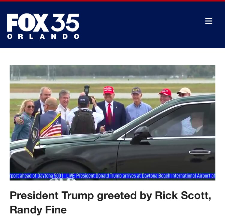 Trump JUST landed in Daytona Beach in my district for the Daytona 500. He's attending with my MAGA opponent Randy Fine, who is running scared and trying to shore up support for his weak campaign.