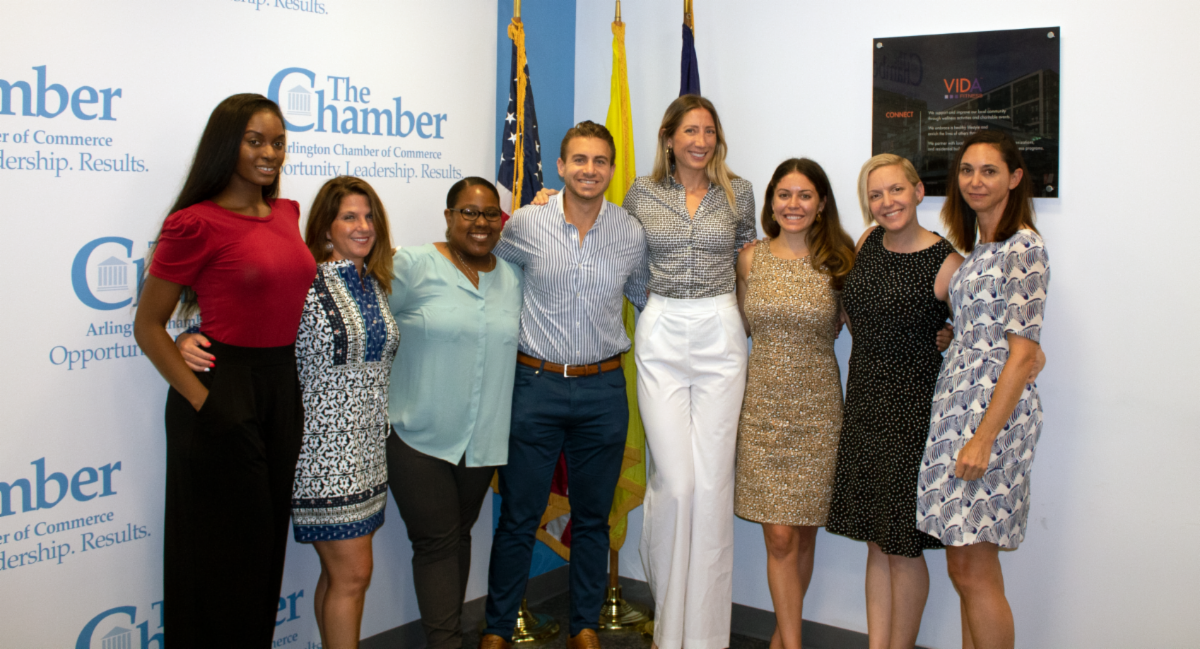 The Arlington Chamber of Commerce held a ribbon cutting ceremony on Wednesday, August 14 to celebrate the naming of our Boardroom as the VIDA Fitness Boardroom at the Arlington Chamber of Commerce. The Chamber’s Executive Committee participated in the celebration with team members from VIDA Fitness. Allison Rand, the Director of Marketing and Communications for VIDA Fitness, did the honors of cutting the ribbon while her colleagues stood by to support her. Allison thanked the Chamber for this great opportunity and for welcoming VIDA Fitness into the Arlington community. The Chamber appreciates all of the support from VIDA Fitness, celebrated in this special partnership.