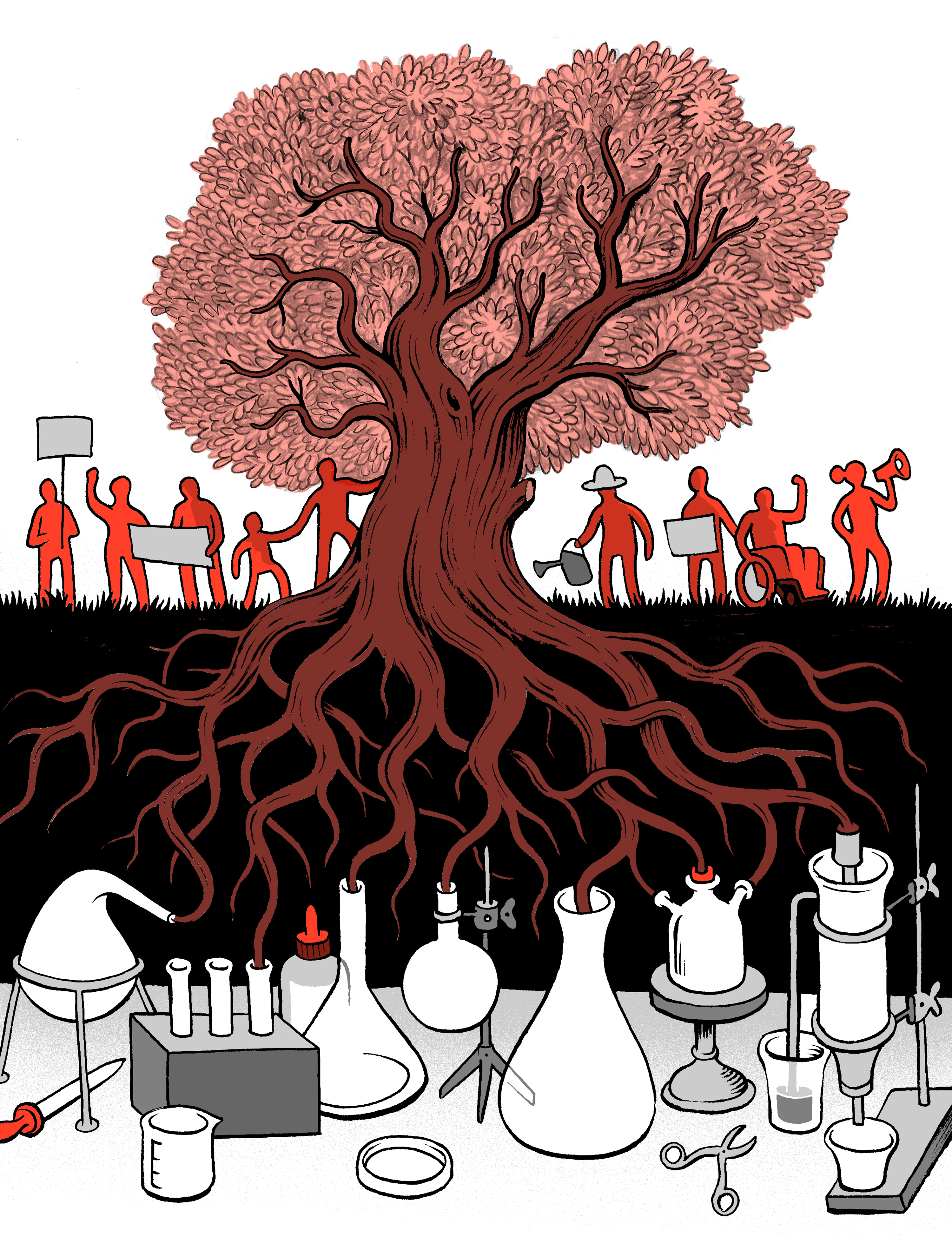Defending science is not enough; science must defend the people. The attacks on science and academia did not occur on a whim. It is a continuation of the ongoing expropriation of the infrastructure of knowledge production and the accelerated privatization (degradation) of public institutions. It is a logical next step in a class war to defund education, healthcare, and any enterprise that retains the promise of benefiting working people and communities. This informs what types of science are undergoing austerity and what other types might experience booms: privatized high tech, military, agribusiness, and philanthrocapitalist pharmaceutical manufacturing and sales. Thus, instead of defending an abstract notion of science, we must scrutinize: science for whom, toward what ends? We defend a science that is for ecological restoration, vaccine development, transgender healthcare—a science that supports the wellbeing of people and the environment. We reject a science that is funded by the military, the fossil fuel industry, and Israel. We condemn a science that serves no benefit to the people other than accumulating profit.
