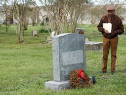 Vanita L. Cheeves visiting the Yoakum City Colored Cemetery. Photograph by Duy Vu, The Victoria Advocate, February 10, 2023