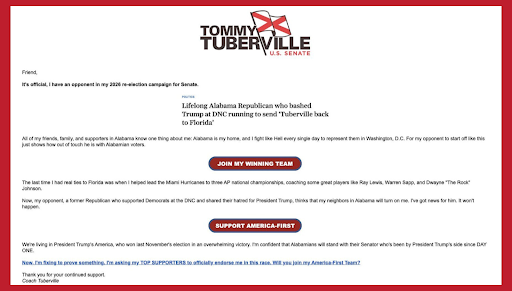 Tuberville doesn’t even live in Alabama anymore. He’s not one of us — he’s just another political celebrity chasing headlines.