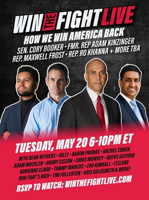 Please RSVP for our kickoff show on Tuesday May 20 at 6pm ET/3pm PT with special guests Sen. Cory Booker, Frmr Rep. Adam Kinzinger, Rep. Maxwell Frost, Rep. Ro Khanna and many more!