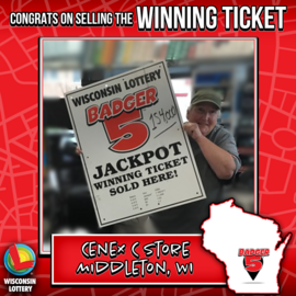 Kelly, Cenex C Store employee, was thrilled to learn his store in Middleton sold a winning $154,000 Badger 5 ticket.