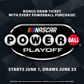Players who purchase a Powerball or Powerball with Power Play® ticket will receive a separate ticket at no additional cost for the NASCAR POWERBALL PLAYOFF™ BONUS DRAW.