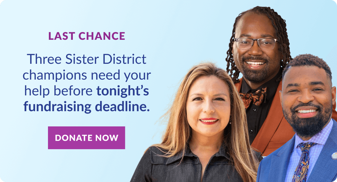 We want to make sure your contribution today makes the maximum impact possible, so we compiled a list of three Sister District candidates who need a last-minute boost: Joshua Cole, Nadarius Clark, and Elizabeth Guzman.