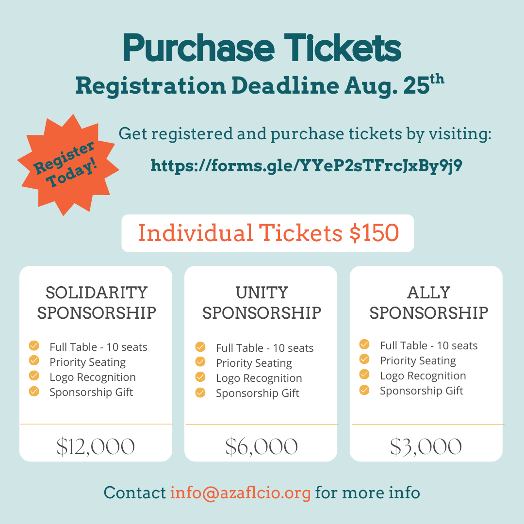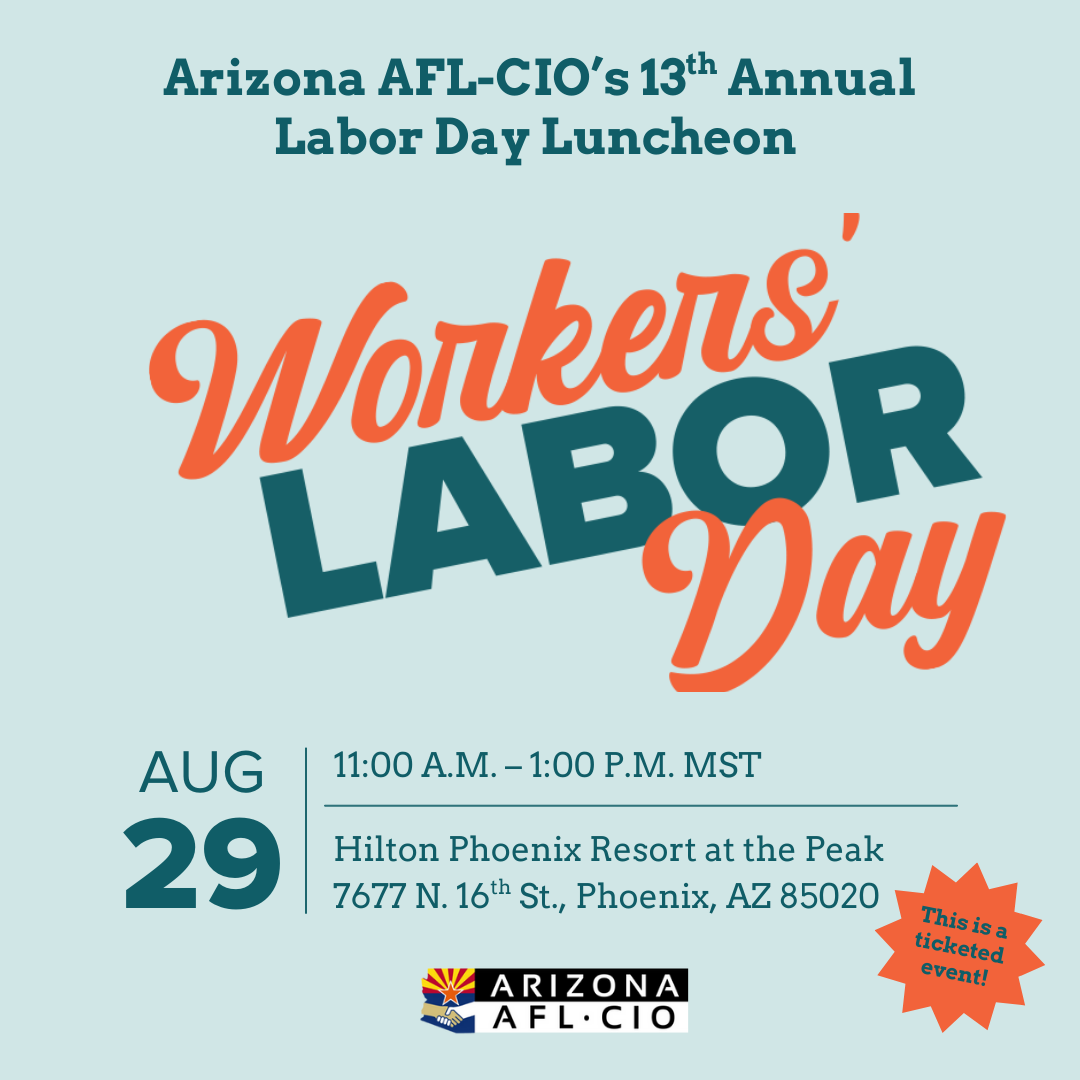 Join us for the 2025 Arizona AFL-CIO Labor Day Luncheon on August 29th! Celebrate the power of unions with inspiring discussions, great food, and more. Don't miss out – register now!