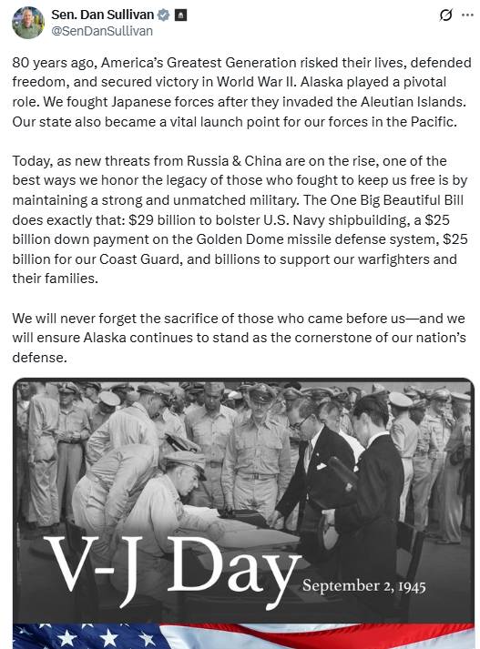 - Sen. Sullivan: Trump-Putin Meeting is Historic Opportunity in World’s Most Strategic Location—Alaska – August 8, 2025