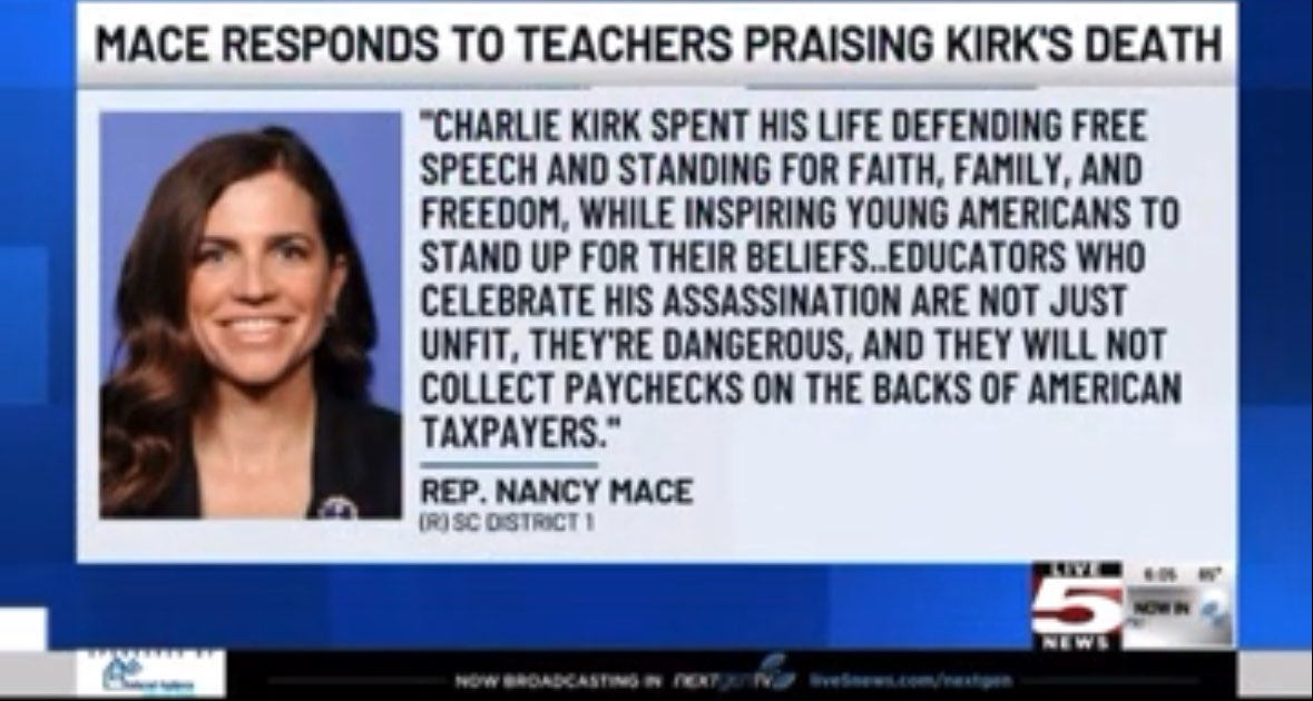 🏛 From the Desk of Congresswoman Nancy Mace As your Representative in Washington, we are working every day to fight for our Lowcountry values. This newsletter is your inside look at what’s happening in D.C. and how our team is working to serve you right here at home. Whether it’s securing our borders, standing up for our military, or protecting your freedoms, we’ve got your back. Here’s what we’ve been working on in Washington: | MACE WIN: We just ranked Top 5 in the ENTIRE House for bills introduced. We’ve filed 54 bills this year alone, working nonstop from the Lowcountry to Washington to deliver results. | The U.S. House of Representatives voted 214–213 to table our resolution to censure Rep. Ilhan Omar (D-MN) and strip her of all committee assignments following her indefensible comments mocking the cold-blooded assassination of Charlie Kirk. 210 Democrats and 4 Republicans (Mike Flood, Jeff Hurd, Tom McClintock, and Cory Mills) rushed to shield Omar from justice following her own actions. “Tonight, 210 Democrats and 4 Republicans sold out and chose to protect Ilhan Omar, a woman who mocked the cold-blooded assassination of an innocent American husband and father, who has openly supported ISIS and the Muslim Brotherhood, and who has repeatedly incited political violence,” said Congresswoman Nancy Mace. “They didn’t stand with Charlie Kirk. They didn’t stand with the millions of Americans mourning his death. They stood with the one who mocked his legacy. They showed us exactly who they are, and we won’t forget.” Just days after Kirk’s murder, Omar appeared on the Breaking Points podcast where she: - Claimed those saying “Charlie Kirk just wanted to have a civil debate” are “full of s—”.