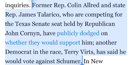 When POLITICO asked the Democrats running for Senate where they stand on Chuck Schumer’s failed leadership, here’s what happened:
