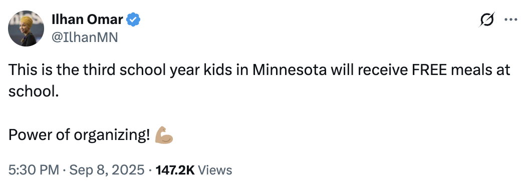 And Democrats in Minnesota didn’t stop at school meals. They passed legislation on voting rights, workers’ rights, paid family and medical leave, green energy policies, and reproductive rights.