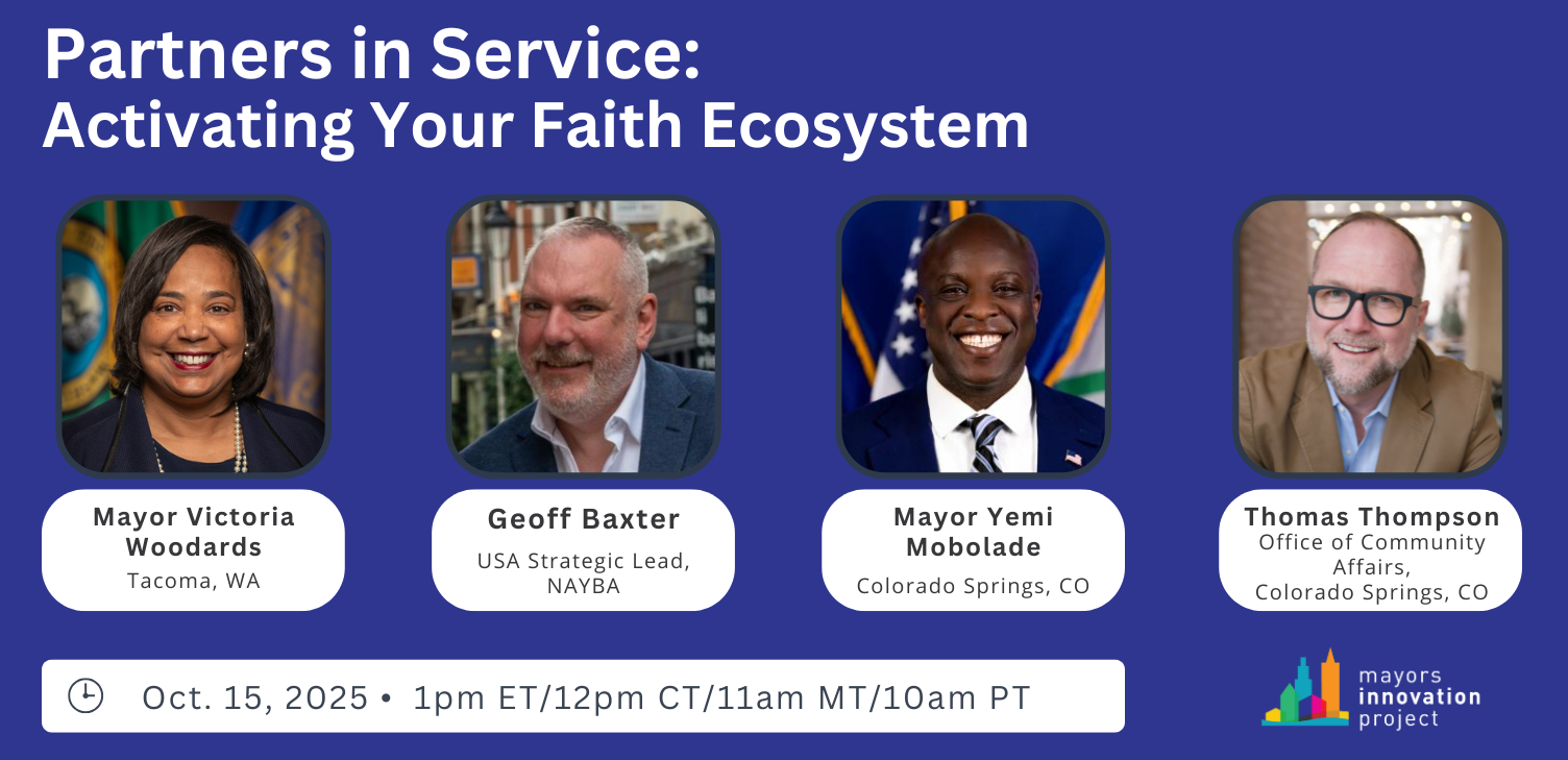 Faith-based organizations do more than provide spiritual guidance. They feed families, shelter neighbors, run afterschool programs, and support mental health. On Wednesday, October 15, join the Mayors Innovation Project for