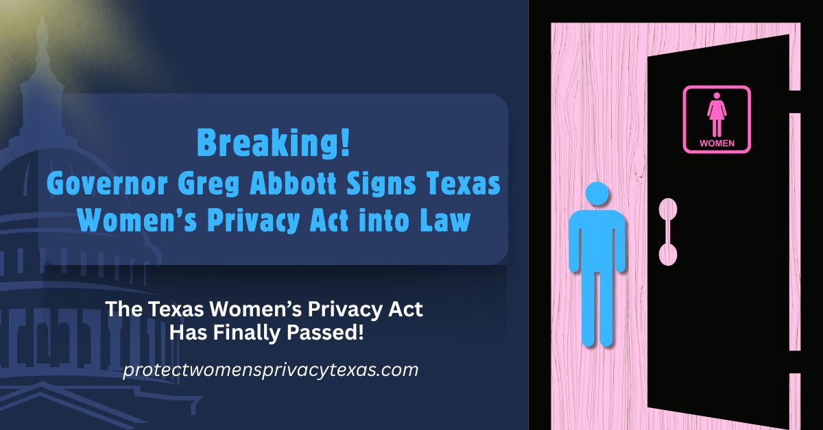 Texas Values was featured in many articles this week on the issue including CBN regarding Gov. Greg Abbott signing the Texas Women's Privacy Act into law!