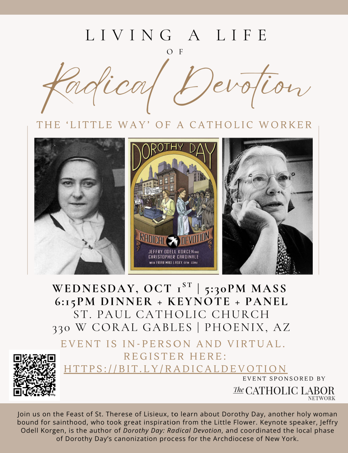 Join the Catholic Labor Network at a special program celebrating the life and legacy of Servant of God Dorothy Day. This free program is an opportunity for people of all faiths, especially workers and labor advocates, to connect with Catholic community and clergy. The event seeks to highlight how the Catholic Church's Social Doctrine provides a foundation for supporting workers in their struggles for safe and just working conditions.