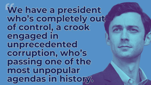 Trump has a massive war chest that he's ready to unleash on states like Georgia to defeat Democrats who stand in his way. We must have Jon's back and make sure that he wins in 2026!