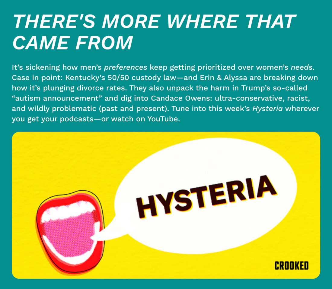 From corrupt Jan. 6 pardons, to attacking judges, to this latest case: Trump isn’t just going after Comey — he’s going after the legal system itself. We rely on that system to protect our elections and to protect our rights. And the authoritarian president knows it. WHAT ELSE?Prepare to be shocked: Trump is already attacking the federal judge who will preside over his prosecution of Comey. U.S. District Judge Michael Nachmanoff, a 2021 Biden appointee, was assigned at random to the case in the Eastern District of Virginia outside Washington, DC. Nachmanoff presided over the 2019 arraignment of Lev Parnas and Igor Fruman, two cronies of Rudy Giuliani caught up in campaign finance accusations. On Friday Trump claimed that Comey was “off to a very good start” because he had been assigned to Nachmanoff, who was appointed, Trump said, by “Crooked Joe Biden.” Why did The Trump Administration cancelled the union contract of more than 30,000 workers in the Federal Bureau of Prisons. Trump has stripped nearly half a million federal workers of union rights since taking office in January. “Don’t be fooled, this is not about efficiency or accountability — this is about silencing our voice,” said Brandy Moore White, president of the Council of Prison Locals. An Oklahoma handler who had acquired some of Joe Exotic’s big cats was mauled by and killed by one of his tigers. Ryan Easley was performing at his Growler Pines Tiger Preserve when one of the tigers attacked him, the New York Times reported. Joe Exotic was the subject of the wildly popular “Tiger King” series on Netflix. He’s currently serving a 22 year sentence for animal abuse and a murder-for-hire scheme. Light at the End of the Email…The generic version of a groundbreaking injectable HIV prevention drug that sells in the US for $28,000 per year is set for worldwide distribution for around $40 per year to 120 nations in 2027. Broadcasters Sinclair and Nexstar both relented in their boycotts of Jimmy Kimmel, saying they will return the comedian’s show to dozens of ABC stations. Sinclair said its decision was made “independent of any government interaction or influence” and said it was exercising free speech when it decided to take Kimmel’s show off the air. What Sinclair didn’t say: Nothing they were putting in Kimmel’s place got anything close to the ad revenue “Jimmy Kimmel Live!” generates. Language changes with the times, and so should your dictionary. “Doomscroll,” “Dad-bod,” “adulting,” “dumbphone,” and “beast mode” are among 5,000 new entries to the latest revised 12th Edition of Merriam-Webster’s Collegiate Dictionary. Are you giving this list the “side-eye”? No problem… that’s in there too. A district-wide ban on cell phones at Jefferson County Public Schools in Kentucky seems to be working, if library book check-outs are any indication of restored attention spans. “Students Turn Back to Books,” this headline reads. We’re here for it! You’re currently a free subscriber to Crooked Media. For the full experience, upgrade your subscription. |