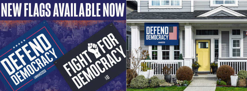Democracy Defenders, We aren’t going to let the Trump administration shut us up. We aren’t going to let the DOJ criminalize our speech or terrorize us and our neighbors in our own communities. Most importantly, we aren’t going to let them scare us from speaking up, standing up and showing up in huge numbers on October 18. They’re desperate to prevent this protest from happening and are threatening to send in troops to every city. Plus, they’re trying to stoke a war between the MAGA and us, the pro-democracy movement, to keep us scared from showing up. It won’t work. Not only are we going to show up, we are going to be louder and prouder than ever before. Let’s send a strong message at the next protest that we stand for America and WE WILL NOT BACK DOWN. Solidarity is key. We will get through this. Imagine the visual: Trump…or the rest of America turning on the TV news and seeing brave patriots flying a HUGE 5’x8’ DEFEND DEMOCRACY FLAG in every city! (Also available in 2’x3 and 3’x5’ sizes!) Send a strong message that America is against Trump and his regime. We will NOT back down! We must show up in even greater numbers this time. You can make a powerful statement and show you’re on the right side of history by wearing official Lincoln Square protest gear from our pro-democracy store. Our pro-democracy gear is more than just clothing—it’s a declaration. It’s for those who are loud, proud, and unapologetically fed up. If you’re ready to show the world where you stand, this gear was made for you. If you plan to show up for No Kings 2, please enjoy 20% off your pro-democracy merch order of $75 or more in the Lincoln Square store, with code MOBILIZE. This offer ends on 9/30, but Hurry! Limited quantities remain on our most popular designs. Order now to get your merch in time for the protest! We believe change isn’t just possible—it’s coming. And we’re not sitting quietly while authoritarian nonsense takes hold. Our apparel is all about belonging to the ferocious opposition and showing the world exactly which side you’re on. Protest-ready, everyday bold—wear it to march, to the store, or just around the house while rage-watching the news. And the best part? A portion of every purchase helps fund our work spreading facts and truth to folks who seriously need to snap out of it. Because democracy only works when people are paying attention—and your order helps us wake ‘em up. Why? Because democracy depends on informed citizens. So yeah, snag that tee or baseball cap you’ve been eyeing. The future is ours—let’s go take back America! 🛒 Just click the button below, and we’ll automatically update your shopping cart with a 20% discount at checkout on all orders of $75 or more, or use code MOBILIZE. This sale ends 9/30. Buy now to receive your order in time for the No Kings Protest on October 18th. |