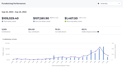 We sent out a plea at 6 PM that went largely unanswered, then inexplicably around 7 PM donations began flooding in. Thousands of Democrats from every state in the union. Teachers, lawyers, yoga instructors, even a rock and roll legend, making donations from $3 to donations of $7500. It was nothing short of a miracle.