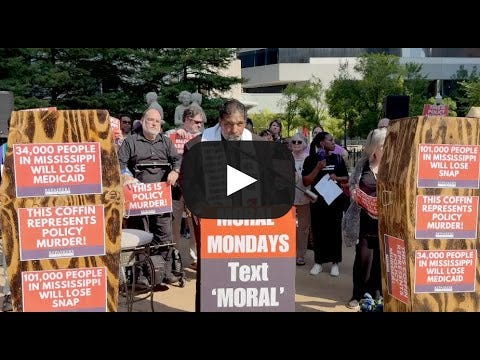 At the White House tomorrow, Donald Trump is scheduled to meet with Congressional leaders from the House and Senate to talk about a plan to keep the government running beyond Tuesday night, when the current budget expires. This meeting was scheduled for last week, when Congress still had time to pass a funding measure, but that meeting was canceled by the White House. Now that there is no time to pass a negotiated spending plan before the deadline, it’s fair to assume the meeting isn’t so much about funding the government as it is about trying to control who will bear the blame. The President, who was elected to run the government, wants to say it’s not his fault that the government isn’t working. But anyone who wants to understand what the looming government shutdown is really about should look beyond the finger-pointing in the Oval Office tomorrow to the Moral Mondays that will be happening across the South, in states where millions of people face a loss of healthcare as soon as the end of this year. When Congress began considering the big, bad, deadly and destructive bill that made massive cuts to healthcare in order to give tax breaks to billionaires this summer, we went to Washington, D.C. with a simple request: we asked members of Congress to meet and pray with the people who would lose their healthcare if they passed the bill. Despite the fact that the current Speaker of the House, Mike Johnson, has spent most of his public career claiming that he wants to bring faith and morality back into public life, he and his colleagues did not accept our invitation to prayer. Instead, they sent officers to arrest Suvya, a woman with cerebral palsy who knows that people like her cannot survive without the healthcare that Medicaid provides. Tomorrow, Suvya will join low-wage workers in North Carolina who are likely to lose their healthcare before Congressional cuts to Medicaid go into effect. Hoping to put off as much of the political cost for passing unpopular legislation as possible, Congressional leaders scheduled the worst of the cuts in the big, bad, deadly, and destructive bill to go into effect after next year’s midterms. But not all of them. This is what the government shut down in really about. Any government funding plan cannot pass the Senate without support from Democrats, and their leadership has pointed out that cuts to Affordable Care Act subsidies that go into effect next year will result in a 75% cost increase for 24 million low-income workers who get their healthcare through ACA exchanges. Those families are scheduled to get letters about their rate increases in the next couple of weeks. Because most families who qualify for these credits don't have enough savings to cover a $400 emergency, this dramatic increase in the cost of healthcare will mean they can no longer afford health insurance. The federal government is on track to shut down this week because the President and his party, who currently run the government, refuse to negotiate a plan to help millions of Americans keep their healthcare. When a government that has ceased to serve the people shuts down, it is the job of the people to come together and reclaim the tools of government. But to take back our government, we must first reclaim the moral narrative that has misled so many of our neighbors. We must be clear that this is not partisan deadlock shutting down the government; it’s a moral crisis that is the direct result of members of Congress abdicating their responsibility to establish justice and promote the general welfare. This is why Moral Monday delegations are visiting Senators offices across the South tomorrow. Nearly every Senator who voted for Washington’s big, deadly, destructive bill identifies as a Christian. But the Bible says nothing that would support stripping people of basic health care or food. The prophet Isaiah says, “Woe unto those who legislate evil and rob the poor of their right, making women and children their prey.’ This is the Bible we preach and teach. We know its call to love and care for all people, especially the most vulnerable. Policymakers have made clear that they are willing to sacrifice the poor for the consolidation of power, and it is the job of clergy and moral leaders to challenge that narrative in the public square. But we are not coming alone, because we know it’s not the power of our words that will open people’s eyes to what’s really happening. The people who are suffering because their government is not working for them are the ones who can shift the moral narrative. These are the people who must be heard. These are the voices that Moral Mondays will highlight in eight Southern states tomorrow. We don’t know for sure whether a meeting will happen at the White House, but we know that if you’re interested in building up a moral movement that can reclaim a government for the people, you can listen to the people who are showing us the way forward on the Repairers of the Breach livestream here at noon ET. You’re currently a free subscriber to Our Moral Moment w/ Bishop William Barber & Jonathan Wilson-Hartgrove. Our Moral Moment is and always will be a free publication. We’re grateful to those who opt for a paid subscription to support this work. |
