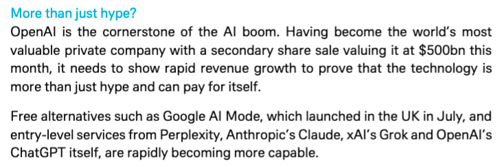 A future without customers? The AI boom’s hidden flawIf everyone gets replaced with AI, why do you need to buy AI?The Capitalist is a reader-supported publicationReject Corporate Left Wing JournalismIn the summer of 2023, a small law firm in Chicago makes a quiet but seismic decision. Facing rising costs and competitive pressure, the firm subscribed to an enterprise version of ChatGPT, the AI model developed by OpenAI. Within months, the software had streamlined document review, legal research, and even client correspondence. The catch? The firm, which once employed 15 paralegals, now needed only two, whose sole job it is to feed their fallen co-workers workload into “the machine.” The rest were let go, their roles absorbed by an algorithm that worked faster, cheaper, and—arguably—better. Or as a brave young man once famously said to a young girl “can’t be bargained with, can’t be reasoned with. It doesn’t feel pity, or remorse, or fear. And it absolutely will not stop... ever” This story, shortly to be replicated across countless industries, reveals a troubling paradox at the heart of the AI revolution: the technology has likely passed the point of cannibalizing the very customers it was meant to aid and (more importantly, which is not being talked about at all by anyone) bought by. The AI industry is racing forward with breathtaking ambition. Sam Altman, CEO of OpenAI, has articulated a vision to own the “full stack” of AI— From making custom chips and building data centers, to creating the models and agents that run on them. Altman is even looking at building smartphones, browsers and wearables using his OpenAI tech. Tinnitus Discovery Leaves Doctors Speechless (Try Tonight)Yet, a recent report from Deutsche Bank Research paints a sobering picture of the industry’s financial trajectory. In Europe, the growth of paying AI accounts is stalling, with subscription rates showing a trend line down. Deutsche Bank Research reports that: All that maybe true, but that trend line still exists: The trend line is not a disaster, at least not yet, but it is very clearly moving down. Open AI remains bullish on its corporate customers and enterprise accounts but the core issue of how AI will generate sustainable revenue is still…vague. Altman himself has commented on this saying “We will have to monetize it somehow at some point. The compute costs are eye-watering” “Some how” and “At some point” are concerning phrases. Especially when there is a bulk of evidence emerging that individual AI subscriptions are not fitting in to an easily marketable solution for private consumers. Unlike the iPhone, which sold billions of units by creating a new consumer market, AI has not lent itself to mass individual subscriptions so far. Quite the opposite in fact. Netflix’s or Spotify’s streaming model, another oft-cited analogy, also falters: while it can generate cat videos or write code, AI’s most transformative application is in enterprise settings, where a single license can replace entire floors of people. AI is not Grammerly. It doesnt help make you a better writer. It is not like autocorrect on a phone that helps corrects your spelling. It is fast becoming apparent that AI is not here to help you become better at what you do at all, it is here to replace you, and your colleagues, and what you all do … entirely. Let’s consider the Chicago law firm example again. In a hypothetical world, each of those 15 original paralegals might have subscribed to ChatGPT to enhance their work (think Grammerly), creating 15 customers. In reality, the firm became the sole customer, slashing its workforce and leaving 13 potential users unemployed. This pattern repeats across industries as diverse as banking, coding, and writing. Far from assisting people in their jobs, AI’s efficiency eliminates the jobs of its most likely adopters because, it turns out, the human component of the equation is the weak link and the machine does better without them. This cannibalization is not a distant threat but a present reality. Estimates vary but some believe that generative AI could automate tasks equivalent to 30% of current white-collar jobs in developed economies within a decade. The same technology that empowers a coder to debug faster or a writer to draft quicker also renders their individual roles redundant when scaled. The societal implications are obviously profound, but the economic paradox is as equally stark. AI’s early adopters—professionals in knowledge-based industries—are increasingly replaced by the tool they once championed as a transformative enhancement of their value. The result is a shrinking pool of individual subscribers, as companies consolidate AI use into fewer and fewer, high-cost enterprise licenses. AI’s next frontier—conversational agents capable of passing the Turing test, where a machine’s responses are truly indistinguishable from a human’s—looms closer than many realize. Alan Turing proposed the original benchmark in 1950, imagining a future where machines could convincingly mimic human dialogue. Sam Altman has argued that the original measurement of the Turing test has been surpassed and that the “Turing Test 2.0” is when AI can “do science” on its own. He may well be correct on the original definition of the Turing test having been passed. If you have ever stumbled into the comment sections of any of the AI generated E-girl influencers on Instagram, you would be forgiven for arguing that the Turing test has long since been consigned to history, given the way the commenters converse (and flirt) with a computer sprite. (Altman himself certainly appears to believe this with his controversial upcoming plans for “erotic content” in ChatGPT.) However if he is correct with his assertion that soon AI will be able to make scientific breakthroughs on its own, you may soon be able to add “Scientist” next to paralegal and coder in t