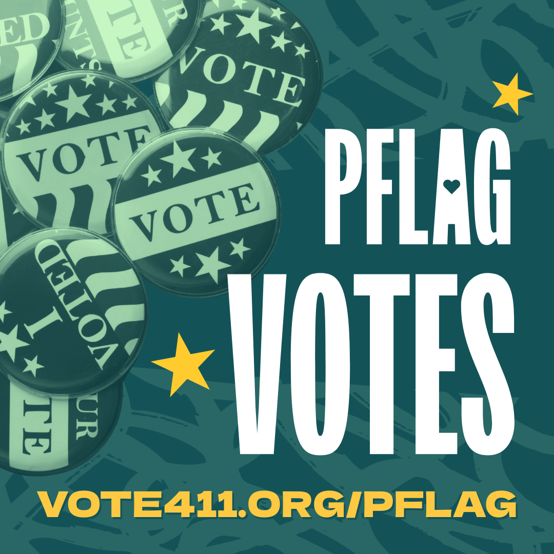 | State and local elections are just around the corner and we need YOU to lead with love at the ballot box! Presidential elections often hold the spotlight, but the people and policies responsible for decisions that directly impact your day-to-day life—including books bans, classroom censorship, gender-affirming care access, facility access, and many more—dominate the state and local levels. Remember: When you love someone LGBTQ+, it is critical to vote for legislation—and legislators—that won't deny your loved ones their rights and freedoms--because love and liberty are inseparable. Vote for your values this Tuesday, November 4. To find your polling location and what’s on your ballot, visit vote411.org/pflag. |