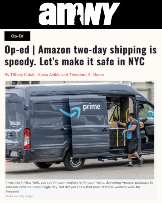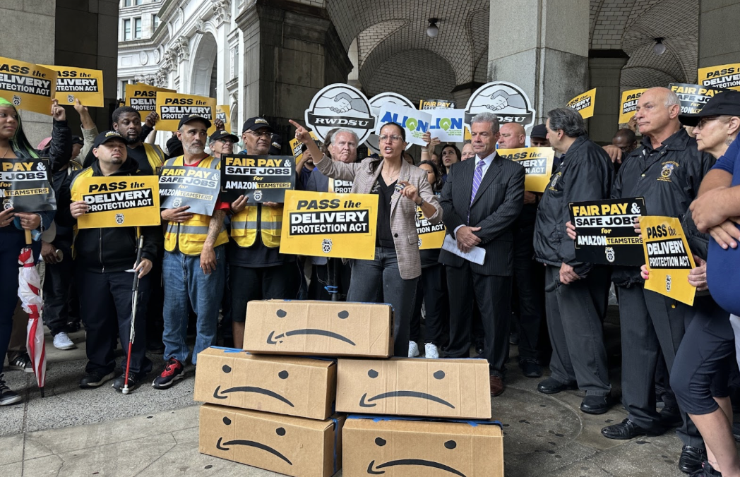 We rallied with Councilmember Tiffany Cabán and the Amazon Teamsters to introduce the Delivery Protection Act, a bill that will hold big delivery corporations like Amazon accountable and keep New Yorkers safe by improving labor conditions at the “Last Mile” facilities. These are the facilities that big companies use to get packages from warehouses to your door. But they aren’t the best neighbors. These facilities are packed in neighborhoods, bringing pollution and safety risk to pedestrians. They often rely on underpaid and unsafe jobs, often subcontracted to evade accountability. The Delivery Protection Act will require companies from directly employ their drivers, end shell “subcontractors”, protect workers from unfair firings, mandate real safety trainings, and more.