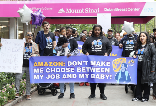 Current and former pregnant Amazon workers with Warehouse Life and Amazon Labor Union Local 1 rallied in NYC to share their brutal treatment working at warehouses.
