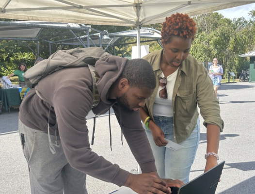 Climate Director Jenille Scott doing community outreach for Green Healthy Schools Campaign at the New York Botanical Garden.