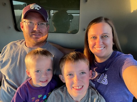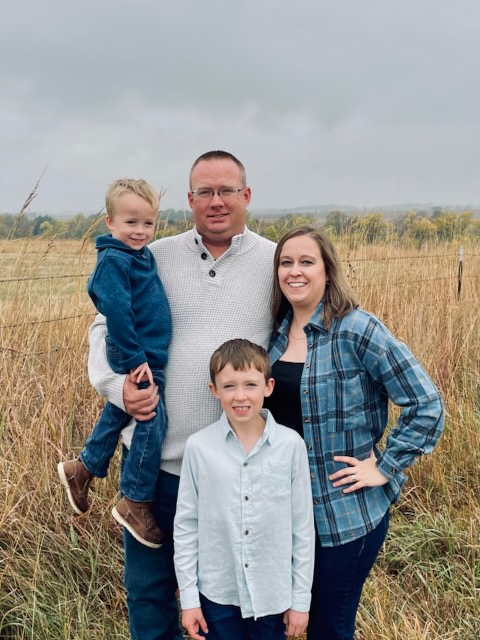 Brett and Emily met while studying at Kansas State University. They live on the farm Brett’s family homesteaded in 1903. A fifth-generation producer, Brett grew up farming corn, soybeans, grain sorghum, and wheat on weekends alongside his parents and grandparents. Today, the family continues to grow corn, soybeans, and raise Charolais-Angus cattle, all while parenting two young boys and balancing two careers. While work often calls them to different locations as Brett advocates for agricultural producers around the country, you can find Emily feeding the cows, checking the grain bins and pivots, and ensuring their family farm is running smoothly. The average person would have no clue that Emily had no experience in agriculture before she married Brett. After they exchanged vows, the calling of agriculture quickly found Emily, and they’ve built a life around shared values, careful timing, and a deep respect for the land. Those values were quickly implanted in the next generation.