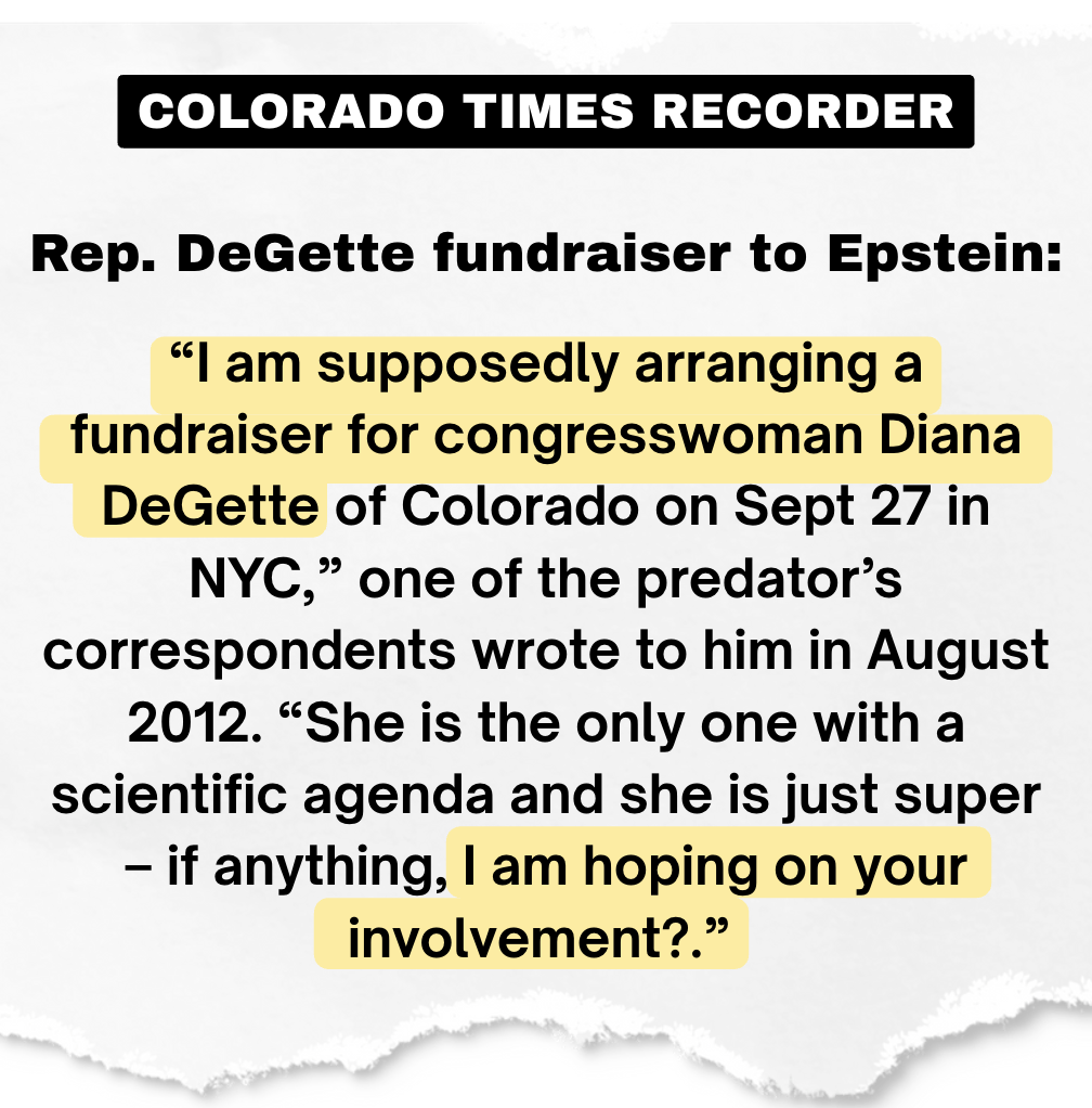 Buried in those emails was a detail I wish I could say shocked me: one of Diana DeGette’s own fundraisers approached Jeffrey Epstein, years after it was public knowledge that he was a predator who targeted underage girls, asking him for a big check to bankroll Diana's campaign.
