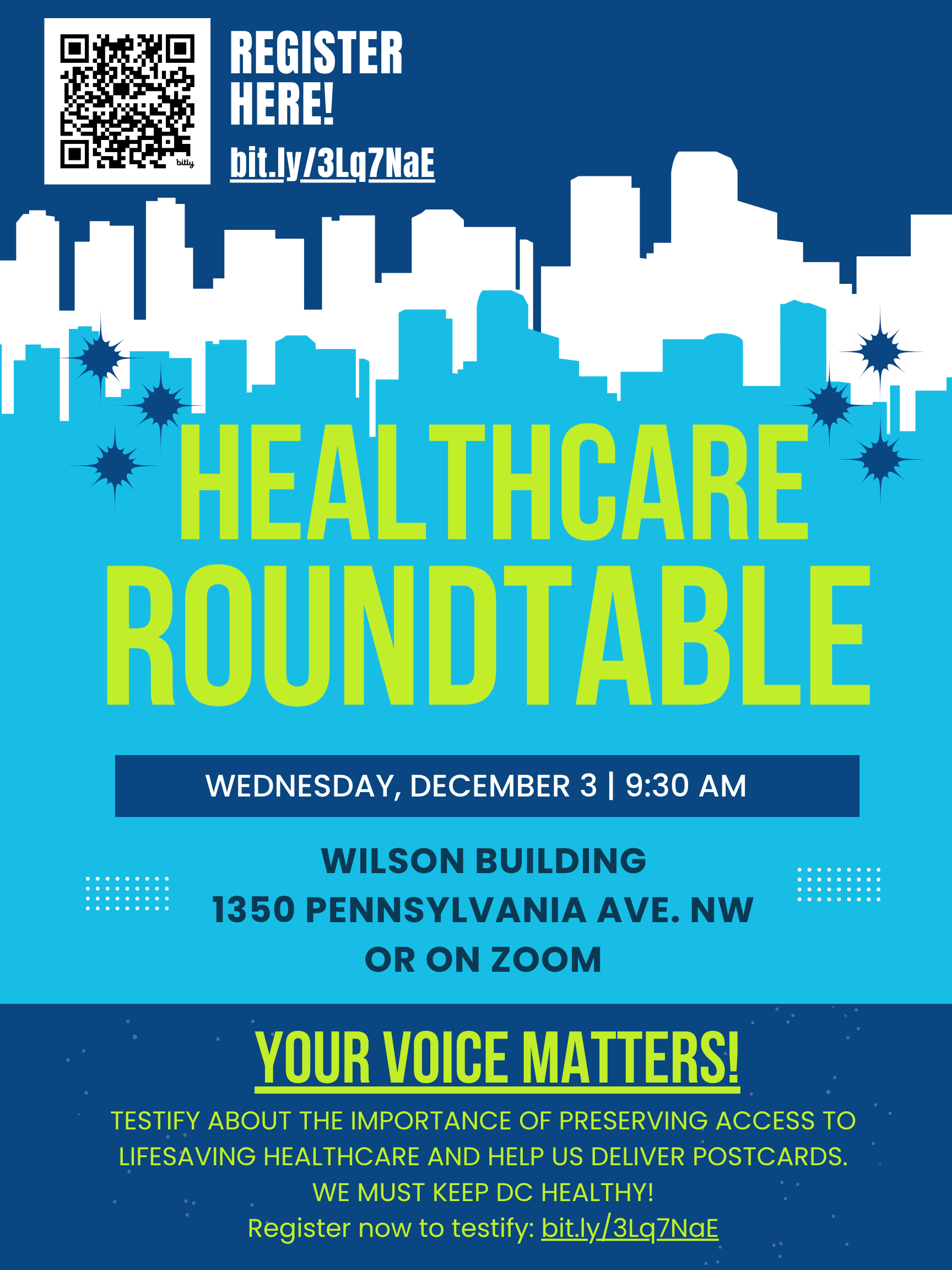 On Wednesday, December 3, 2025 Councilmember Henderson will hold a roundtable on the DC Healthcare Alliance and Medicaid including the new Basic Health Plan.