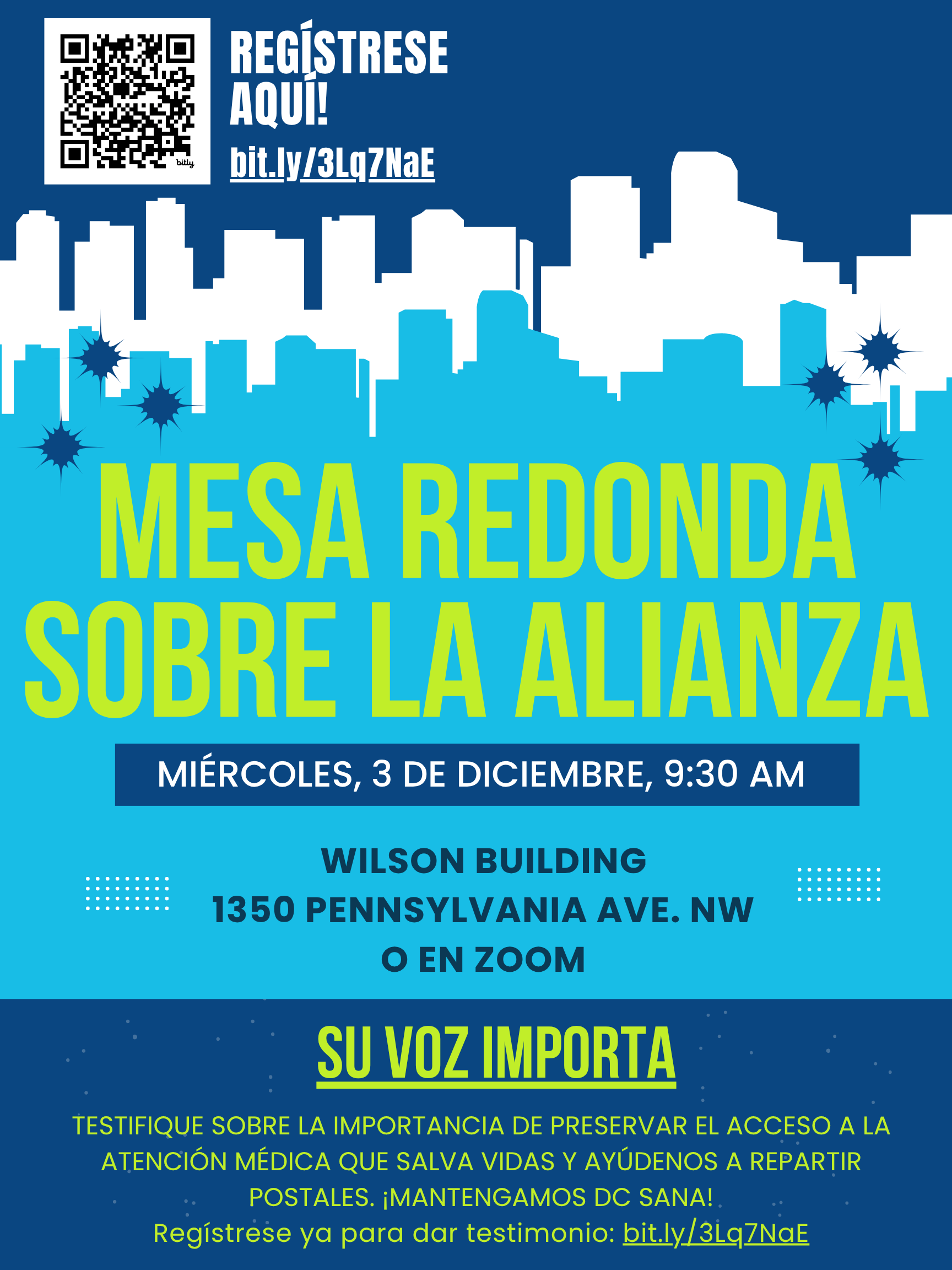 El miércoles 3 de diciembre de 2025, la concejal Henderson celebrará una mesa redonda sobre la Alianza de Salud de DC y Medicaid, incluido el nuevo Plan Básico de Salud.