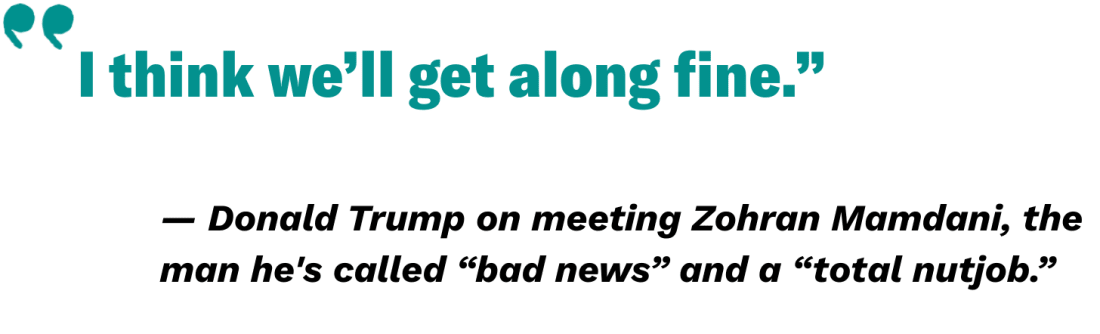 DONNIE VS. MAMDANIDonald Trump’s much-hyped meeting with Zohran Mamdani raises the curtain on the next act in his tumultuous presidency. How much drama are we in for, exactly?