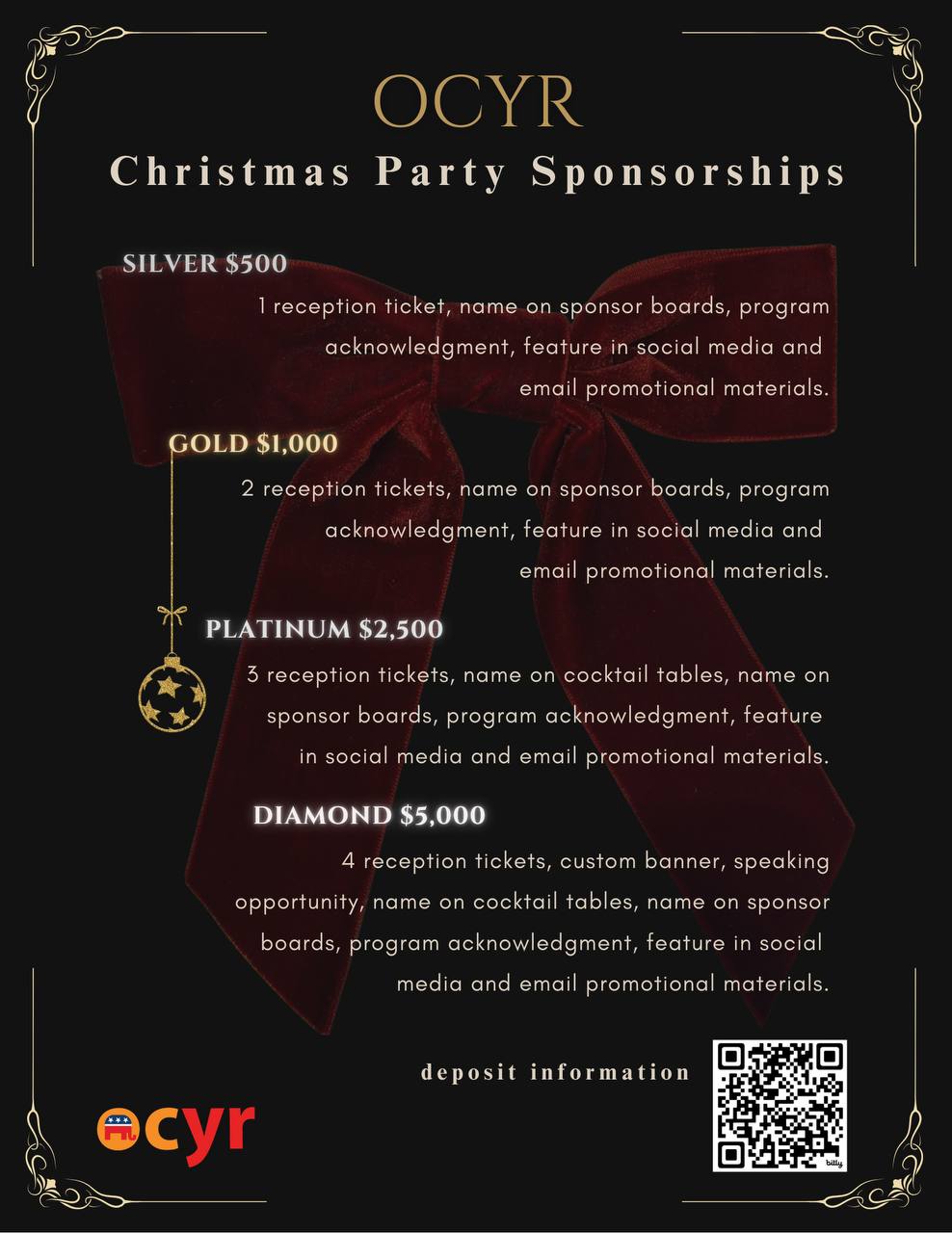 Ring in the season with style! We’re closing out 2025 with one of our most anticipated traditions- the OC Young Republicans Christmas Party, hosted at the exclusive and prestigious Pacific Club in Newport Beach. This private, members-only venue is known for its timeless elegance and we're pulling out all the stops to make this an unforgettable night.