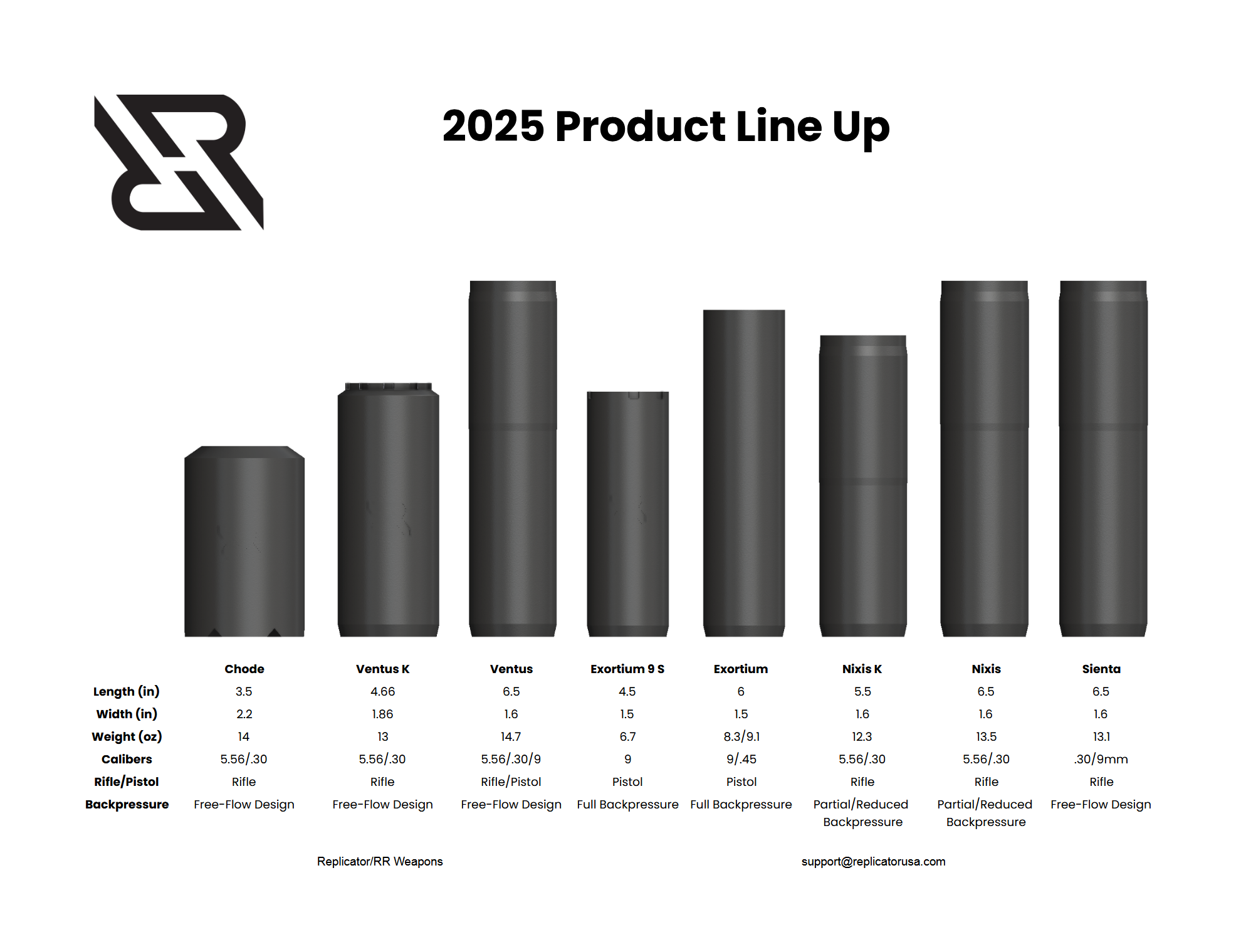 As you may know, Replicator has a full product line of suppressors for pistols and rifles. We have some cans in stock and have some lines coming off backorder in 2-4 weeks (backorders accepted), others may be longer.