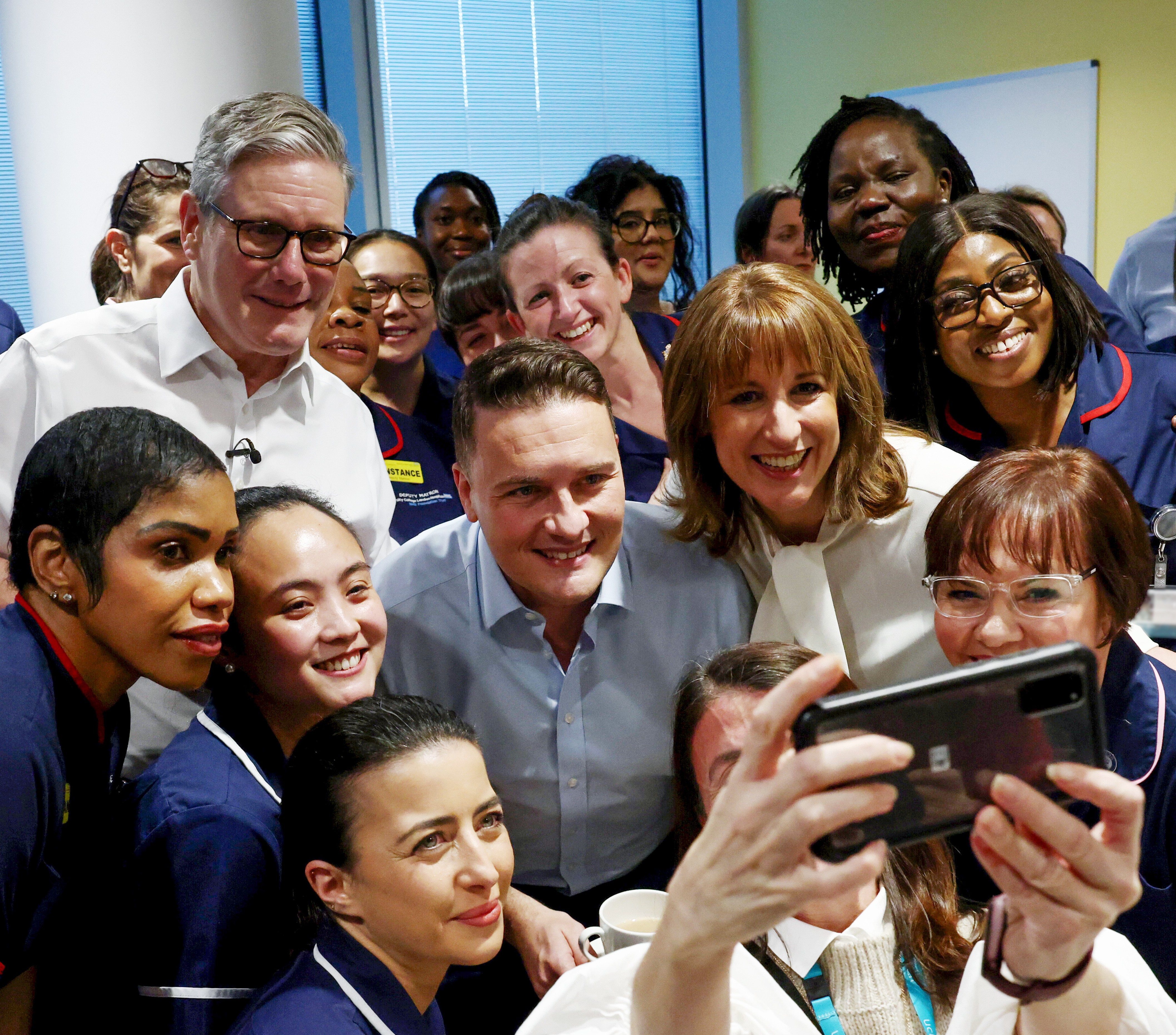 Prime Minister Keir Starmer, Chancellor Rachel Reeves and Health Secretary Wes Streeting meet staff while visiting University College Hospital after presenting the Budget 2025 to Parliament
