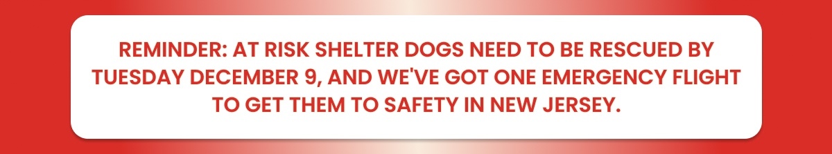 Our New Jersey rescue partners have space, but we must transport these at-risk dogs there next week via the Christmas Wish Rescue Flight to get them to safety in time.