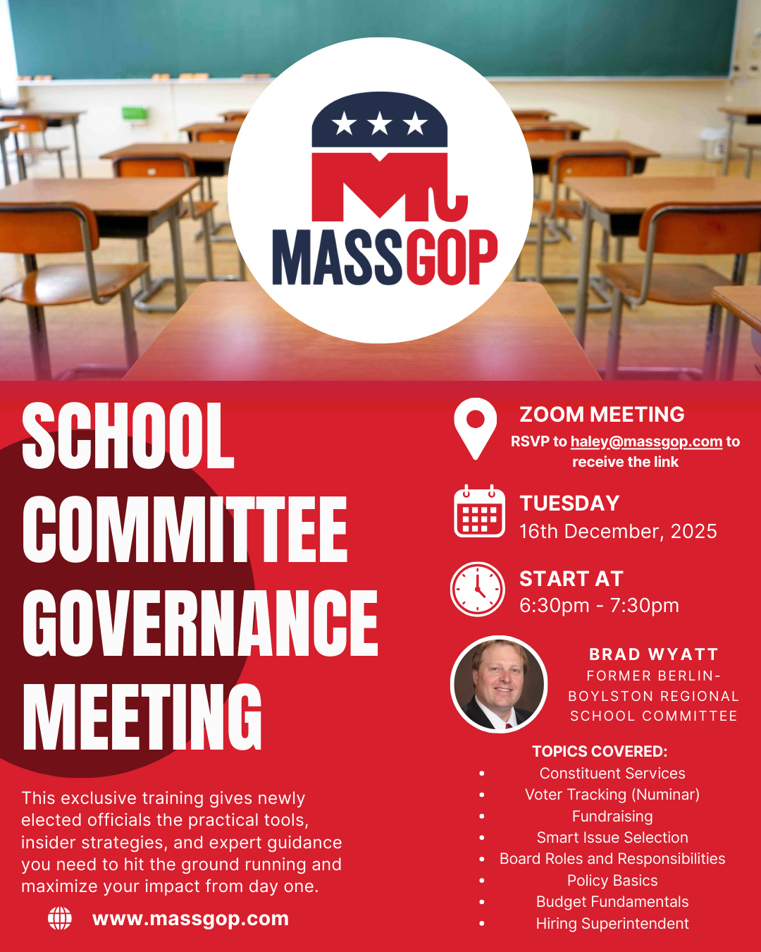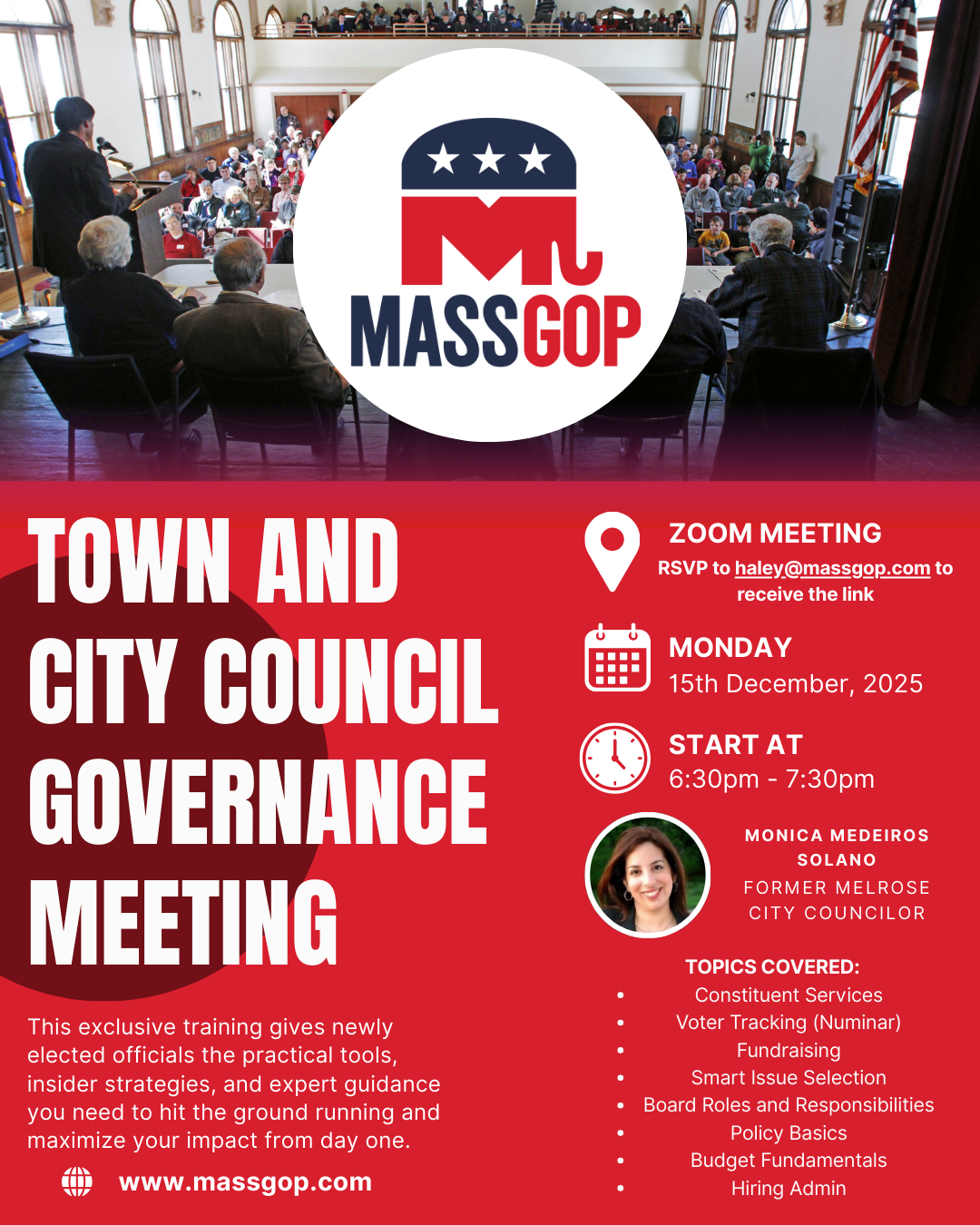 Are you ready to make the most of your elected role and deliver real results for your community? Join MassGOP for our upcoming December training sessions designed specifically for local elected officials who want practical skills, clear guidance on "what's next?", and proven strategies to lead effectively.