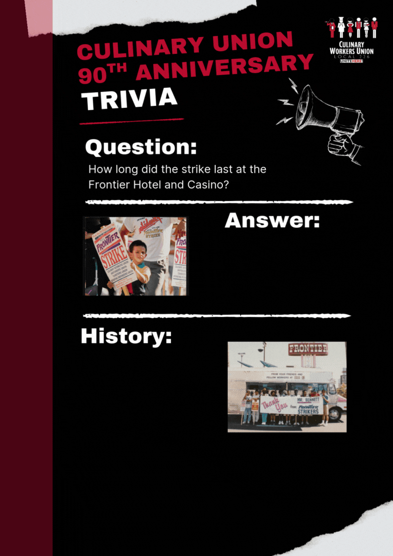 Play our trivia each week on social media to learn more about the Culinary Union's history of fighting & winning a better life for hospitality workers.