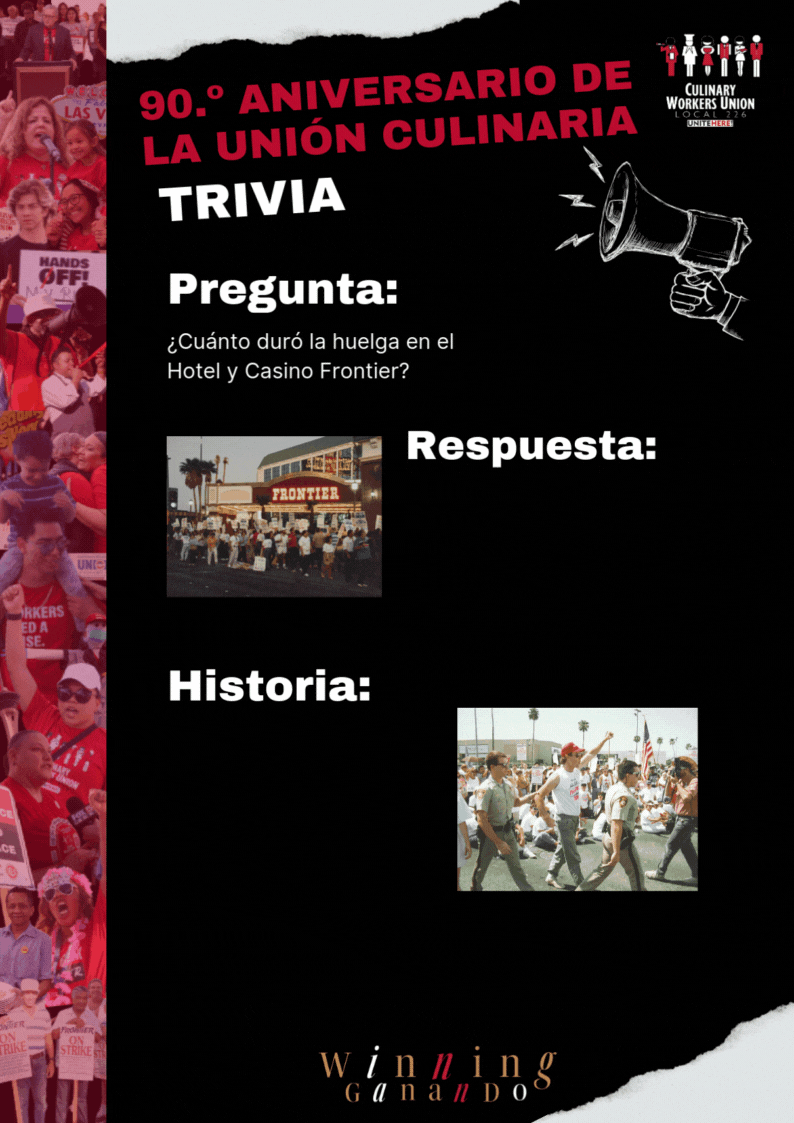 Juega a nuestra trivia cada semana en redes sociales para descubrir m谩s sobre la historia de la Uni贸n Culinaria que ha luchado por una vida mejor para los trabajadores de la hosteler铆a.